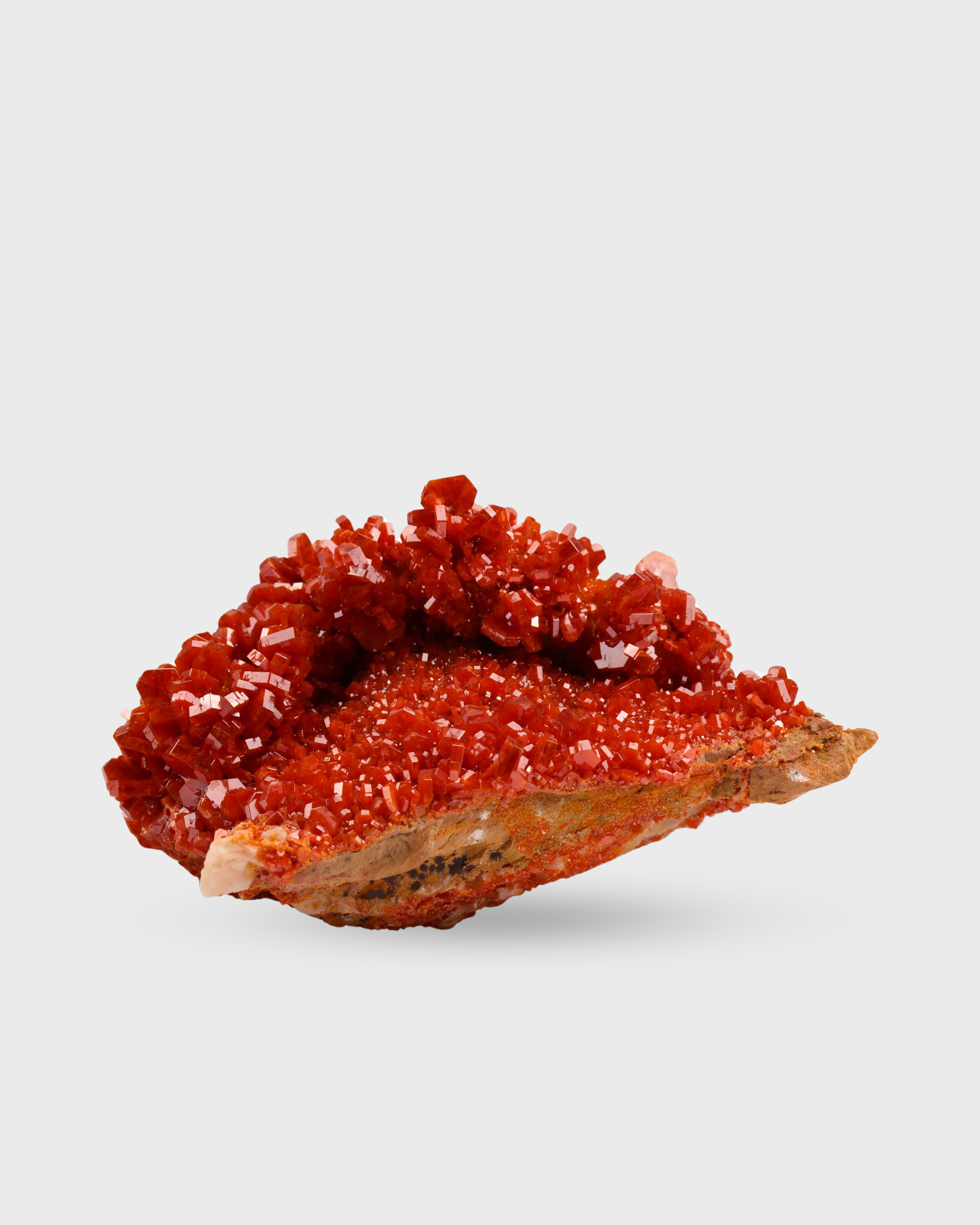 This striking Vanadinite Specimen radiates vibrant red hues with its tightly packed hexagonal crystals. Known for its stimulating and energizing properties, vanadinite enhances creativity, persistence, and focus, making it a powerful stone for goal-setting and productivity. A stunning display piece, it brings both beauty and motivation to any environment.