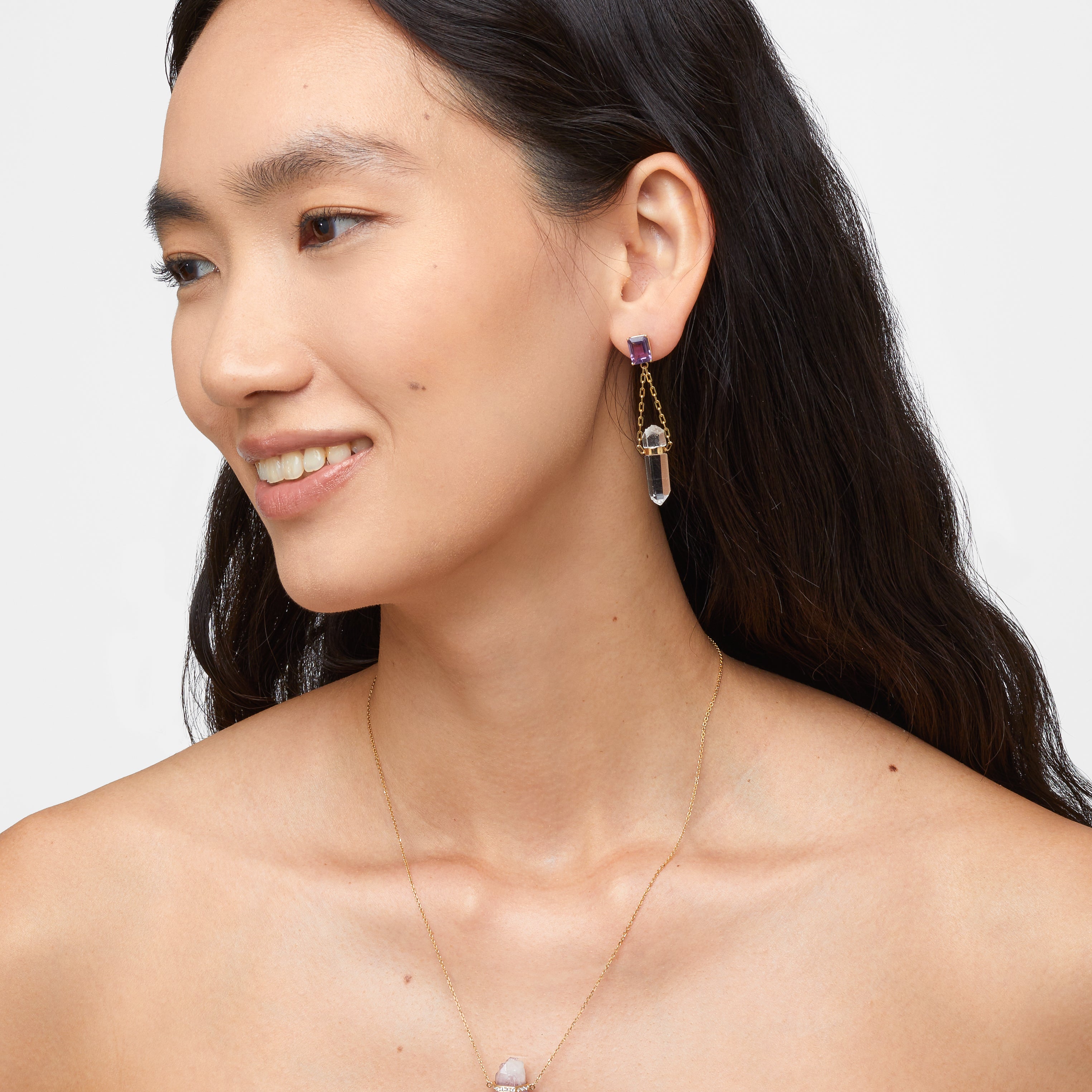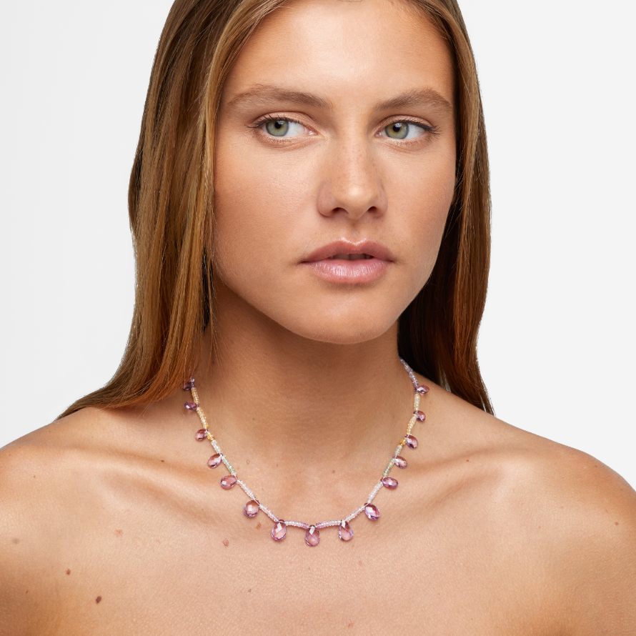 Arizona Morganite Pink Amethyst Gem Drop Necklace