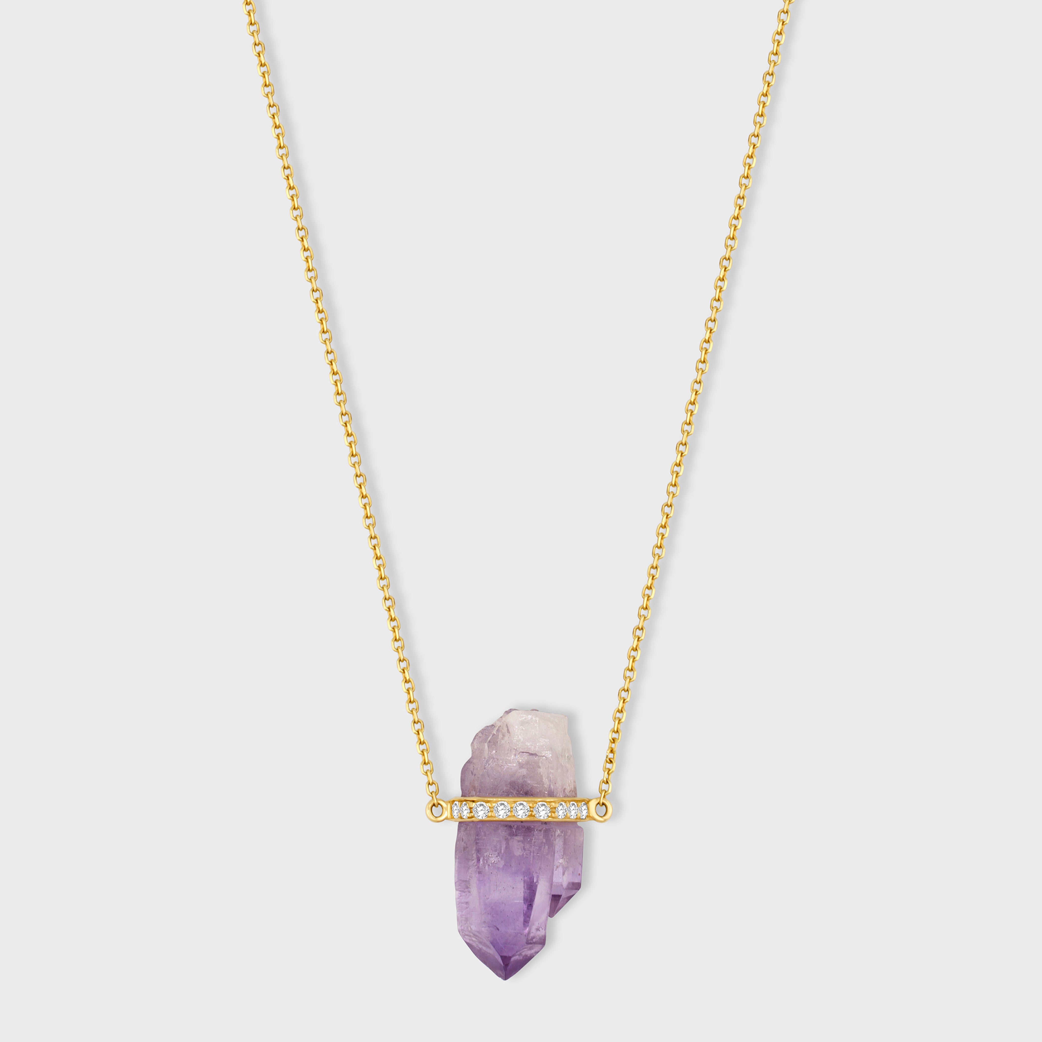 Crystalline Veracruz Amethyst Diamond Bar Necklace