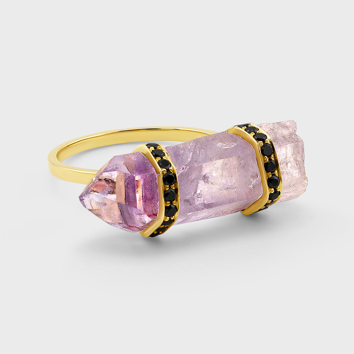 Crystalline Veracruz Amethyst Double Black Diamond Ring