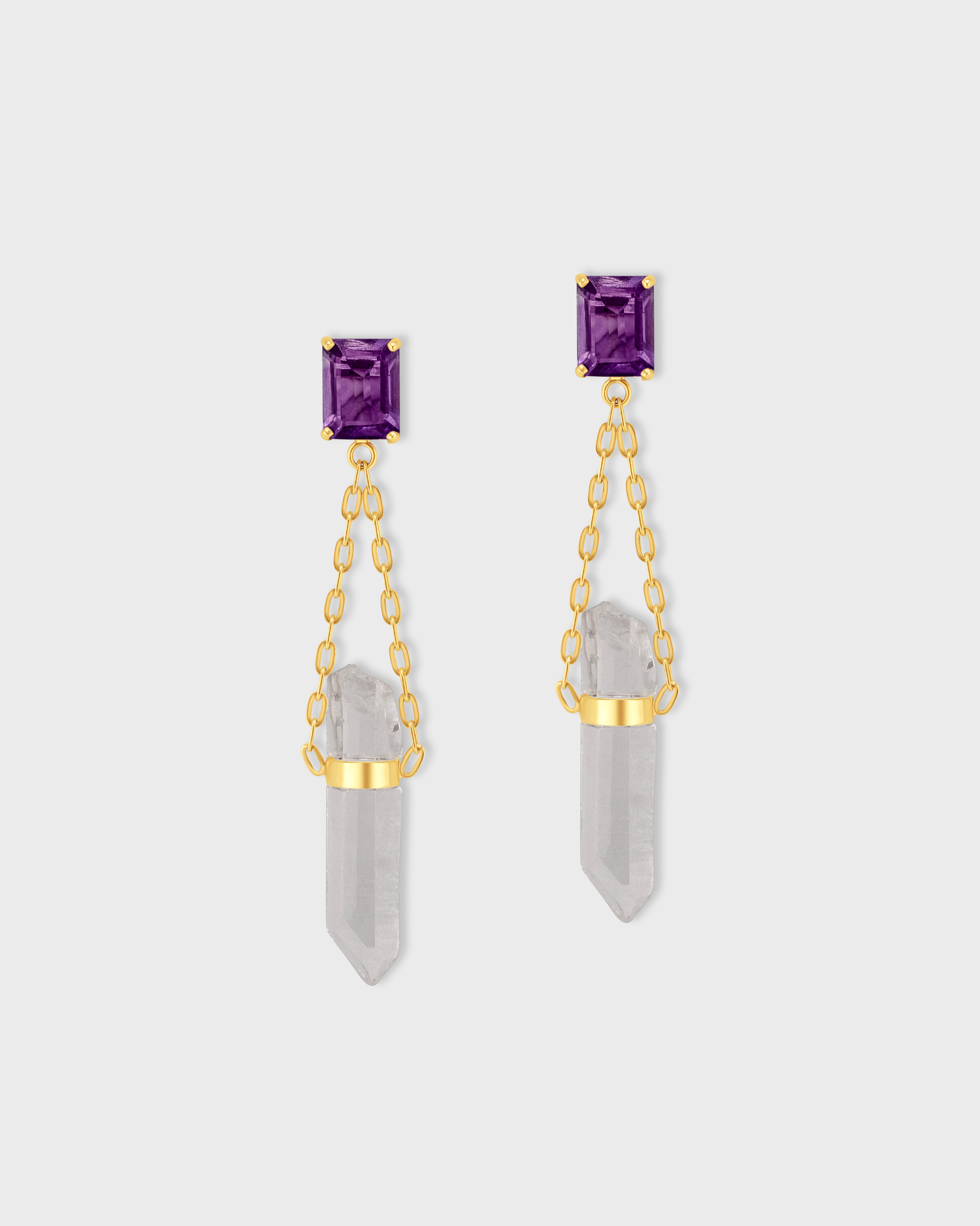 Chakra Amethyst Gemstone Crystal Drop Earrings