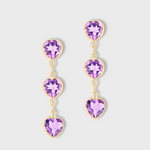 Chakra Amethyst Heart Three Drop Earrings