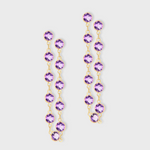 These graceful earrings feature a series of amethyst gemstones, carefully set in gold to catch the light from every angle. Their elongated design provides a sophisticated touch, perfect for adding elegance to any occasion.