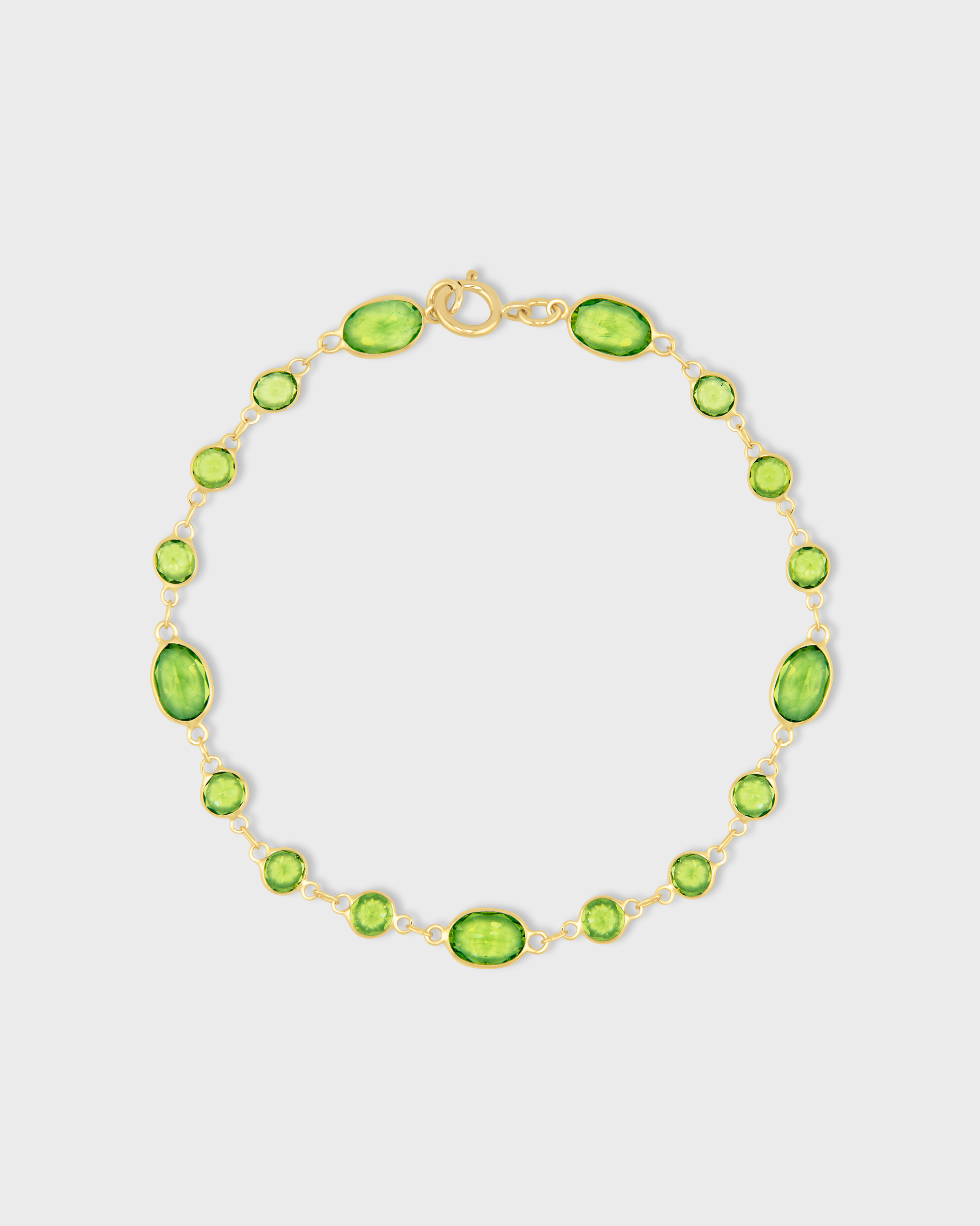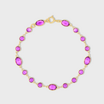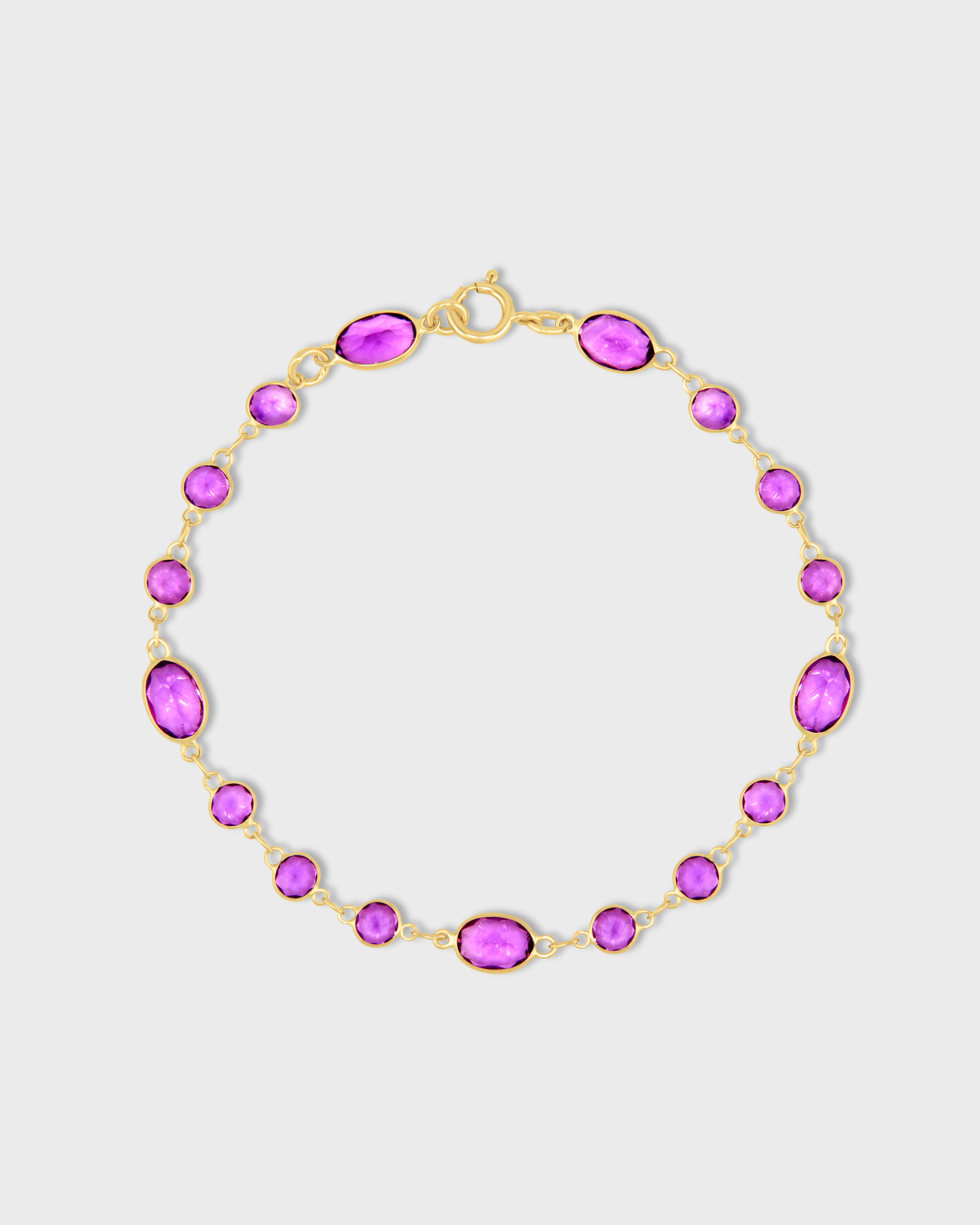 This vibrant bracelet features a delicate chain adorned with a mix of small and large oval purple gemstones. The minimalist design and bright color make it a versatile and eye-catching piece.