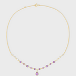 Featuring a blend of topaz and amethyst gemstones, this station necklace showcases colorful drops set in a radiant, chic design. Perfect for layering or wearing alone, it offers both subtlety and elegance.