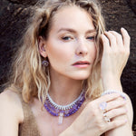 Above, a collection of raw amethyst crystals ethically sourced from Brazil for JIA JIA jewelry pieces