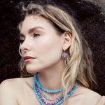 Each beaded jewelry piece is hand strung from the highest quality materials that are cut from natural mineral sources. They are sensitive to prolonged exposure to hairsprays and scents. To ensure longevity please be gentle and avoid tugging and pulling of these pieces.