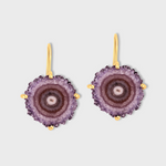 This unique earring features a dreamcatcher like Amethyst slice.