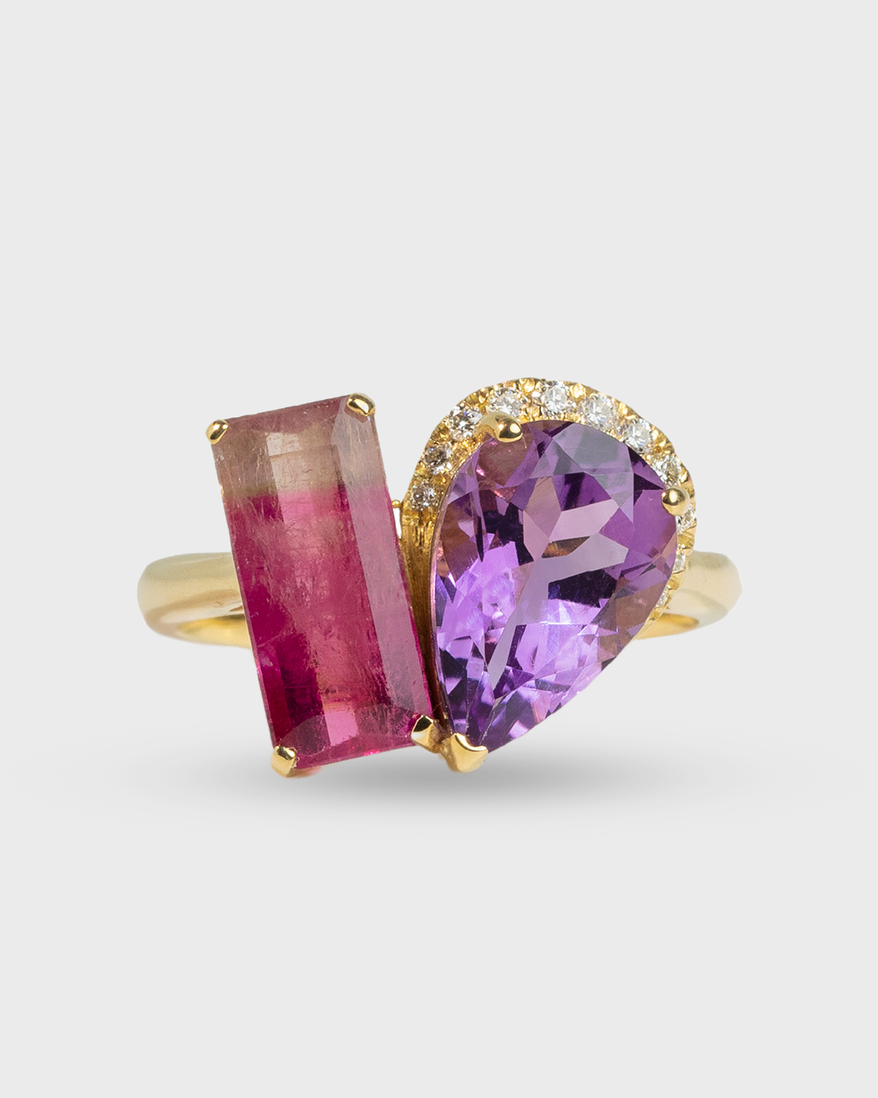 Treasure Rainbow Tourmaline Amethyst Diamond Double Gemstone Ring