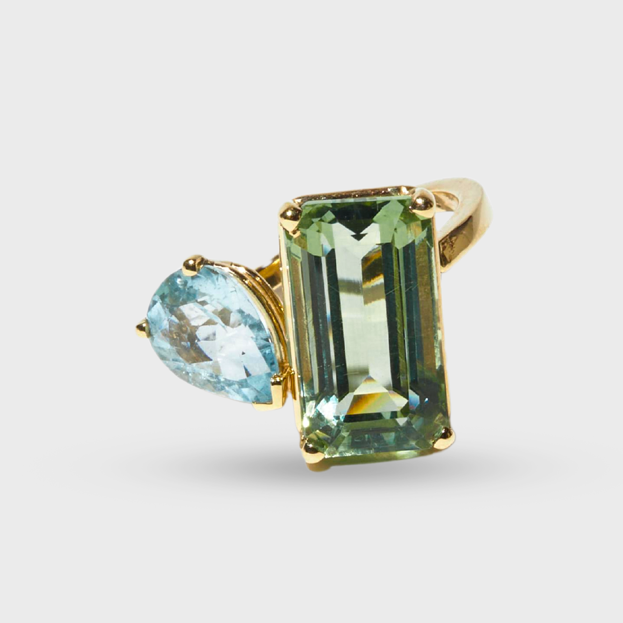 Green Amethyst Aquamarine Double Gemstone Ring