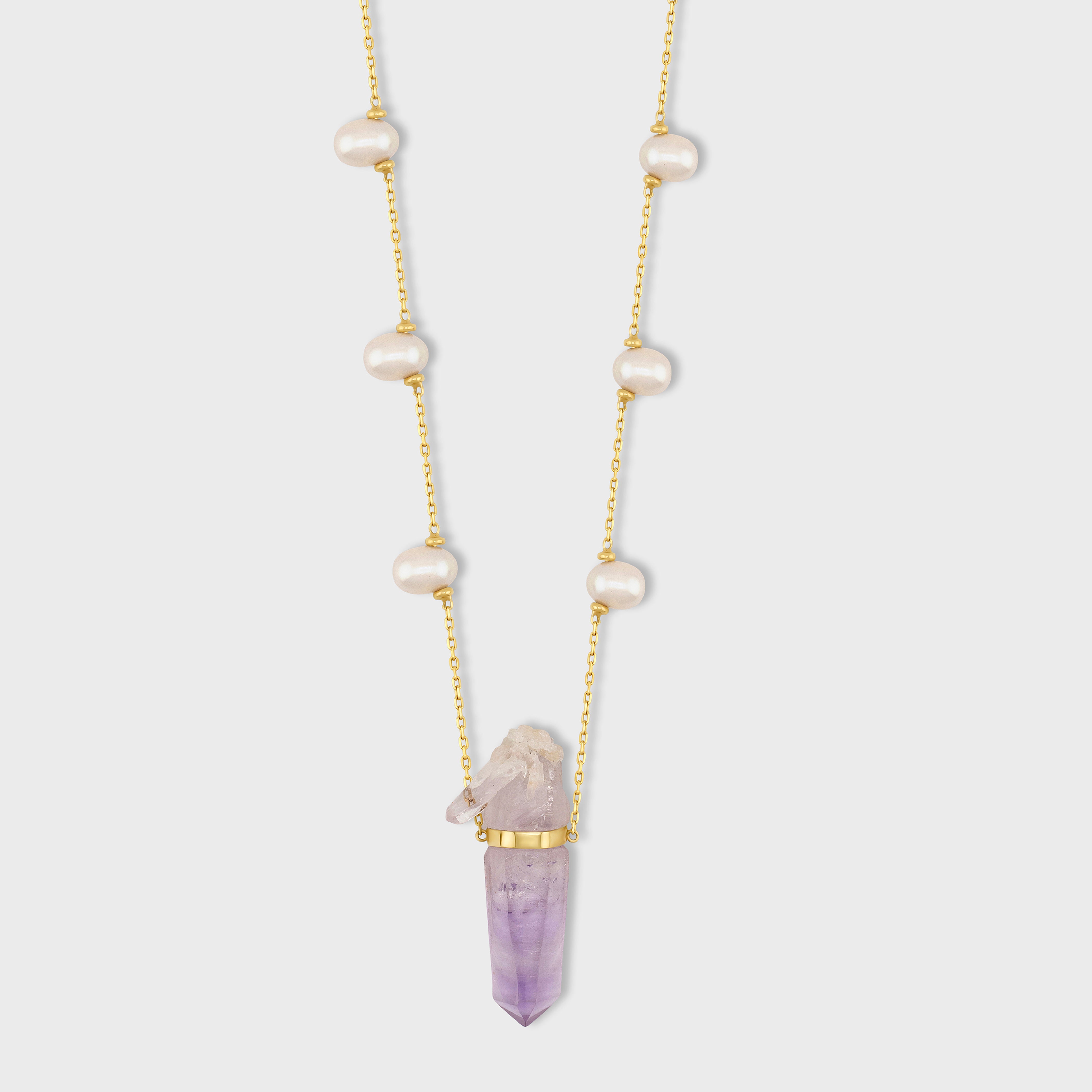 Ocean Pearl Veracruz Amethyst Gold Bar Necklace