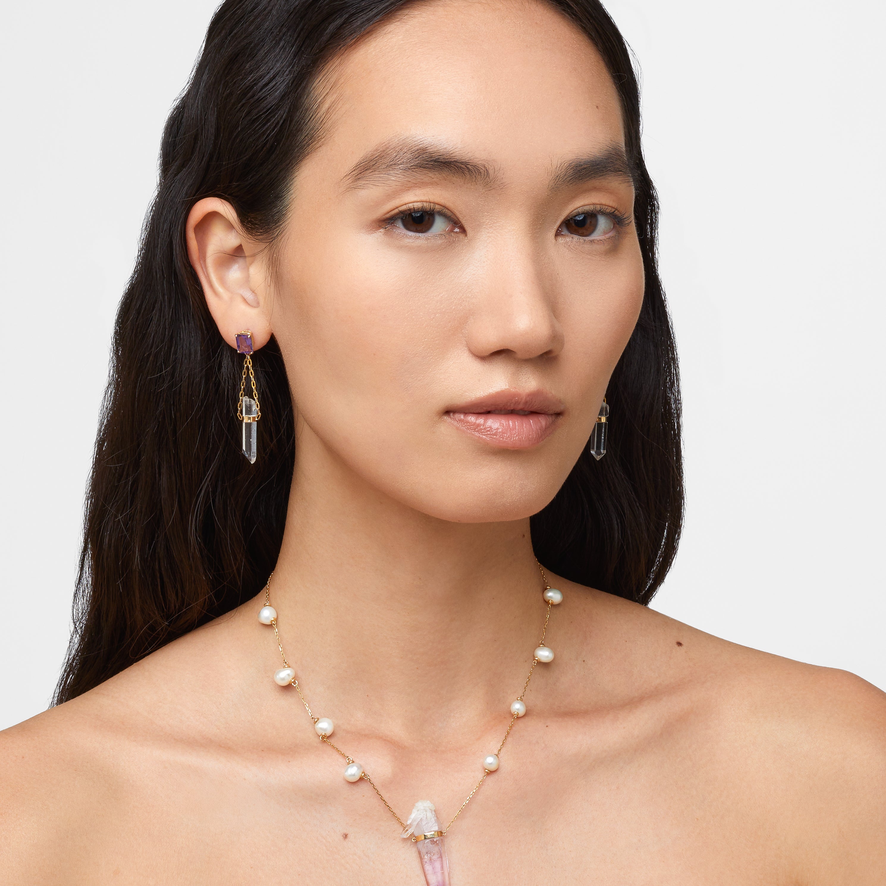 Crystalline Veracruz Amethyst Gold Bar Studs