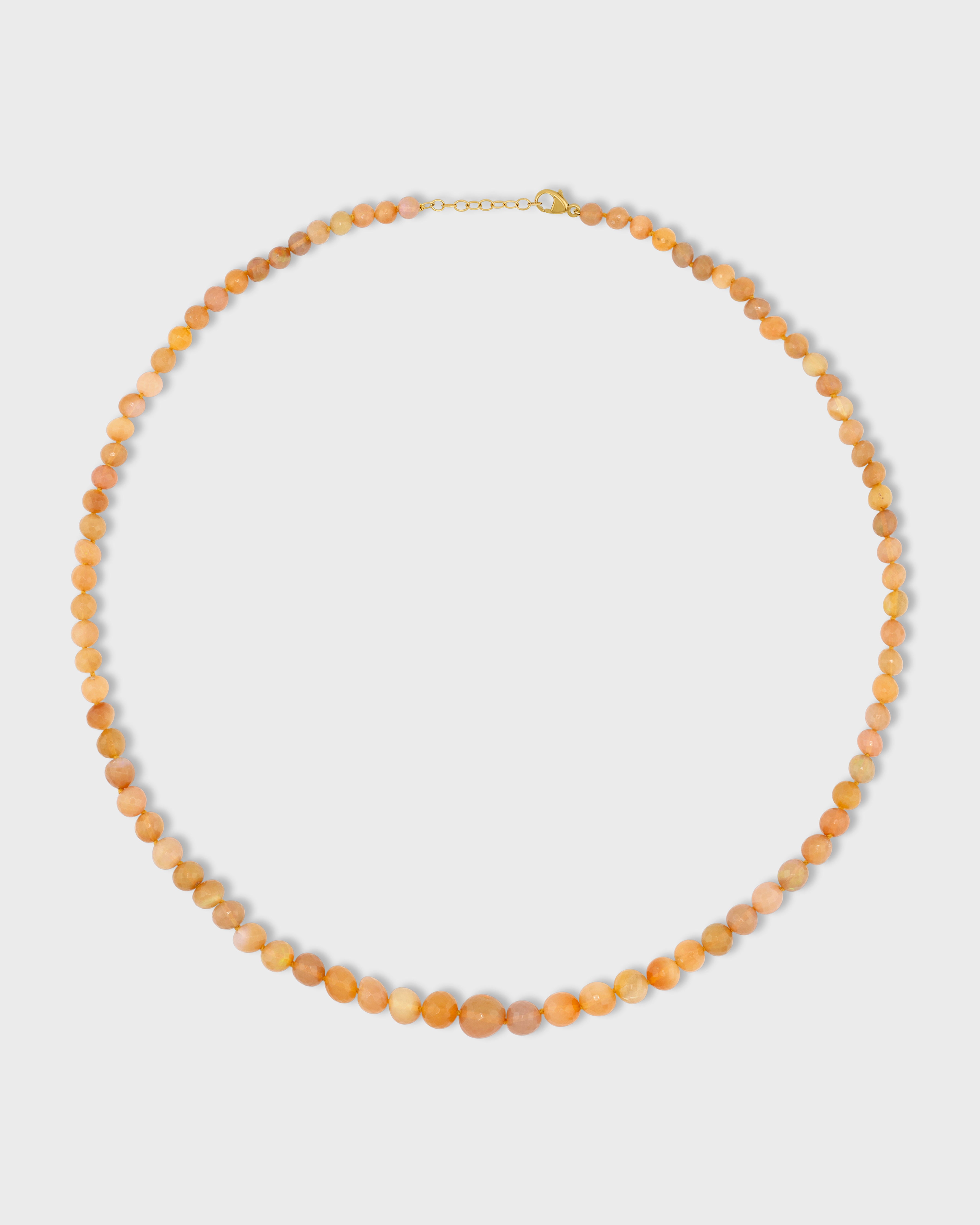 Bright caramel sphere opals necklace hand strung in New York City and finished with 14 karat yellow gold.