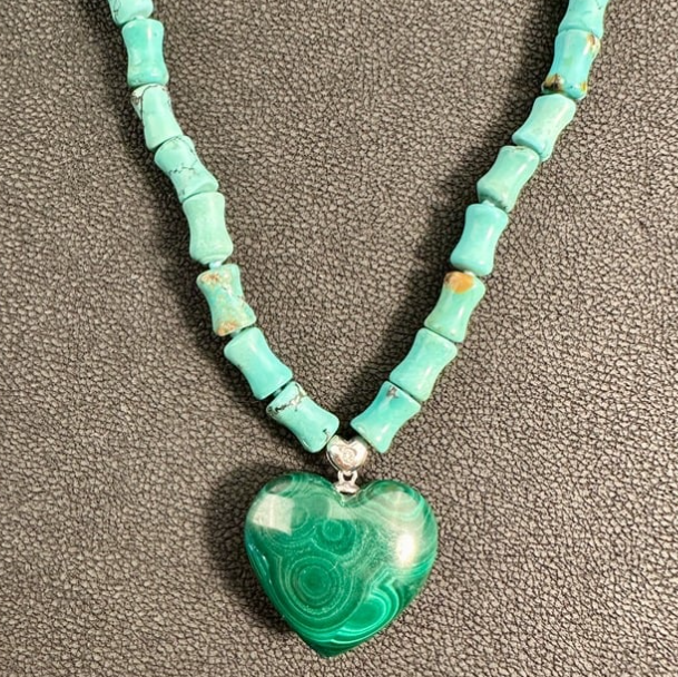 Love Malachite Diamond Heart Turquoise Necklace