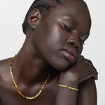 Each beaded jewelry piece is hand strung from the highest quality materials that are cut from natural mineral sources. They are sensitive to prolonged exposure to hairsprays and scents. To ensure longevity please be gentle and avoid tugging and pulling of these pieces.