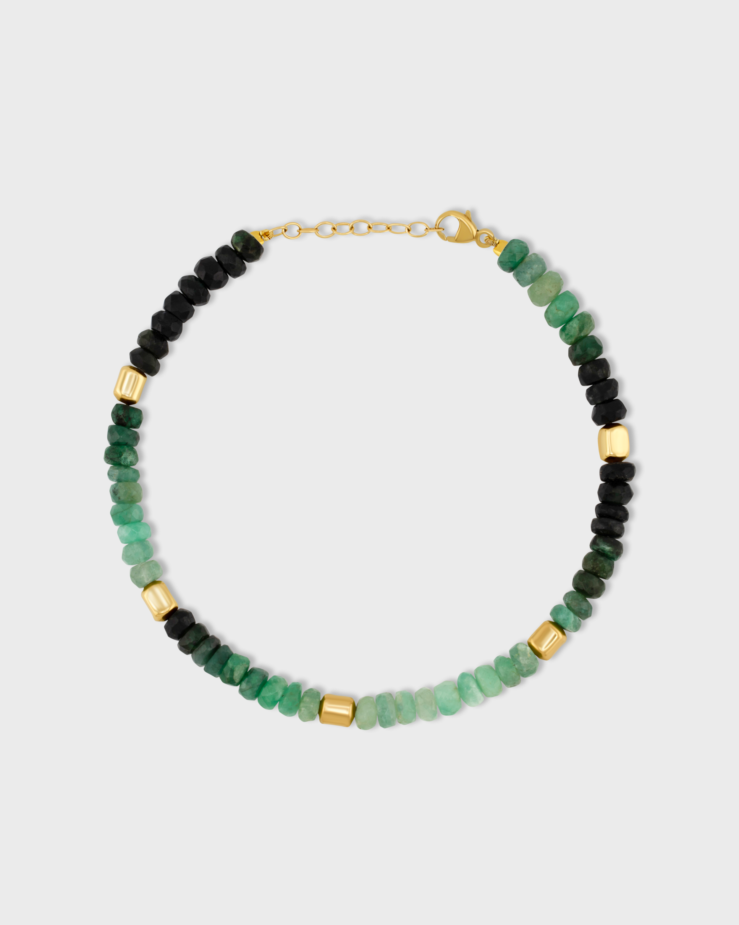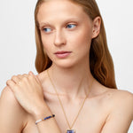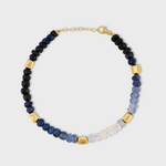 Shades of navy and black combine in this sapphire bracelet, accented with gold beads. It’s a statement of understated luxury and grace.