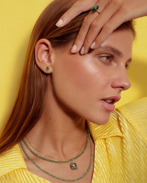 Our birthstone earrings series were created with the intention to collect and gift with meaning. Each earring is handcrafted with brilliantly emerald-cut gemstones and finished in 14 karat gold hardware in New York City.