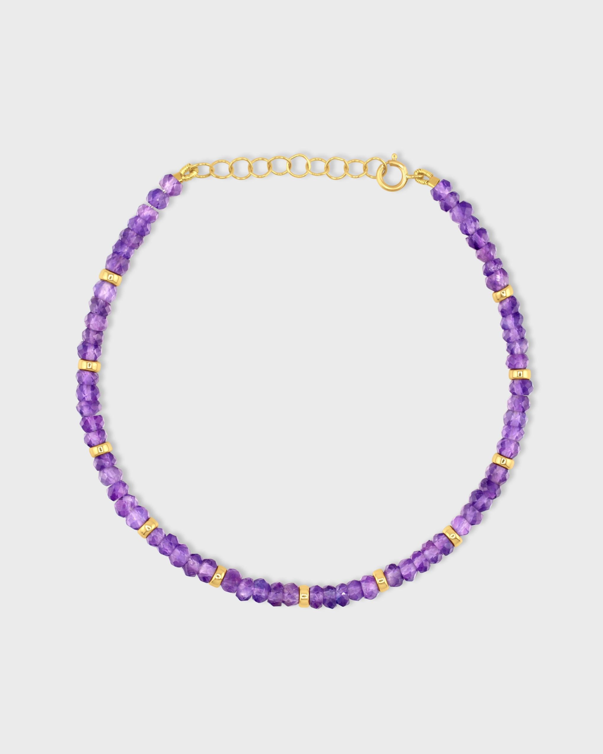 Birthstone February Amethyst Gold Bead Bracelet