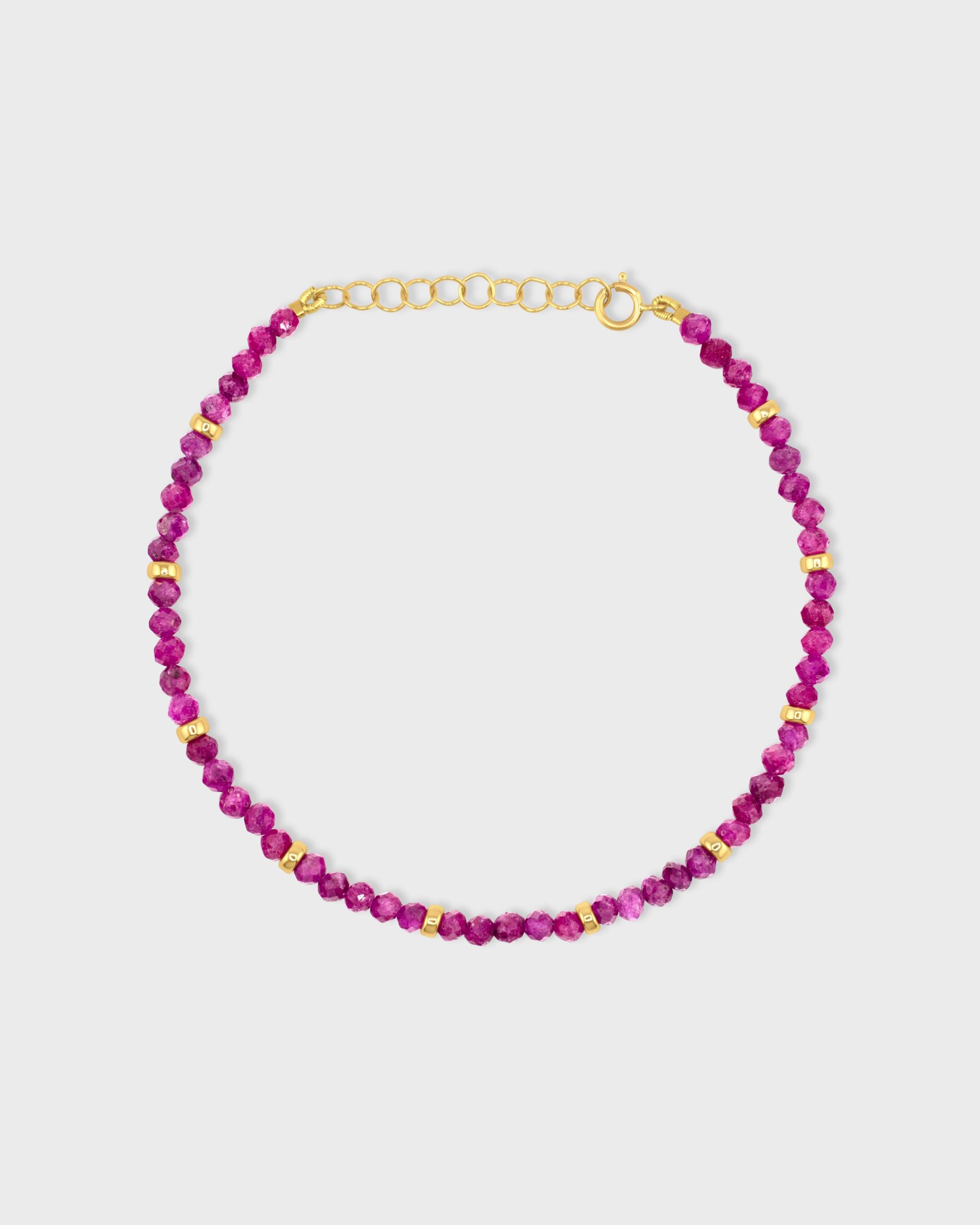 Birthstone July Ruby Gold Bead Bracelet
