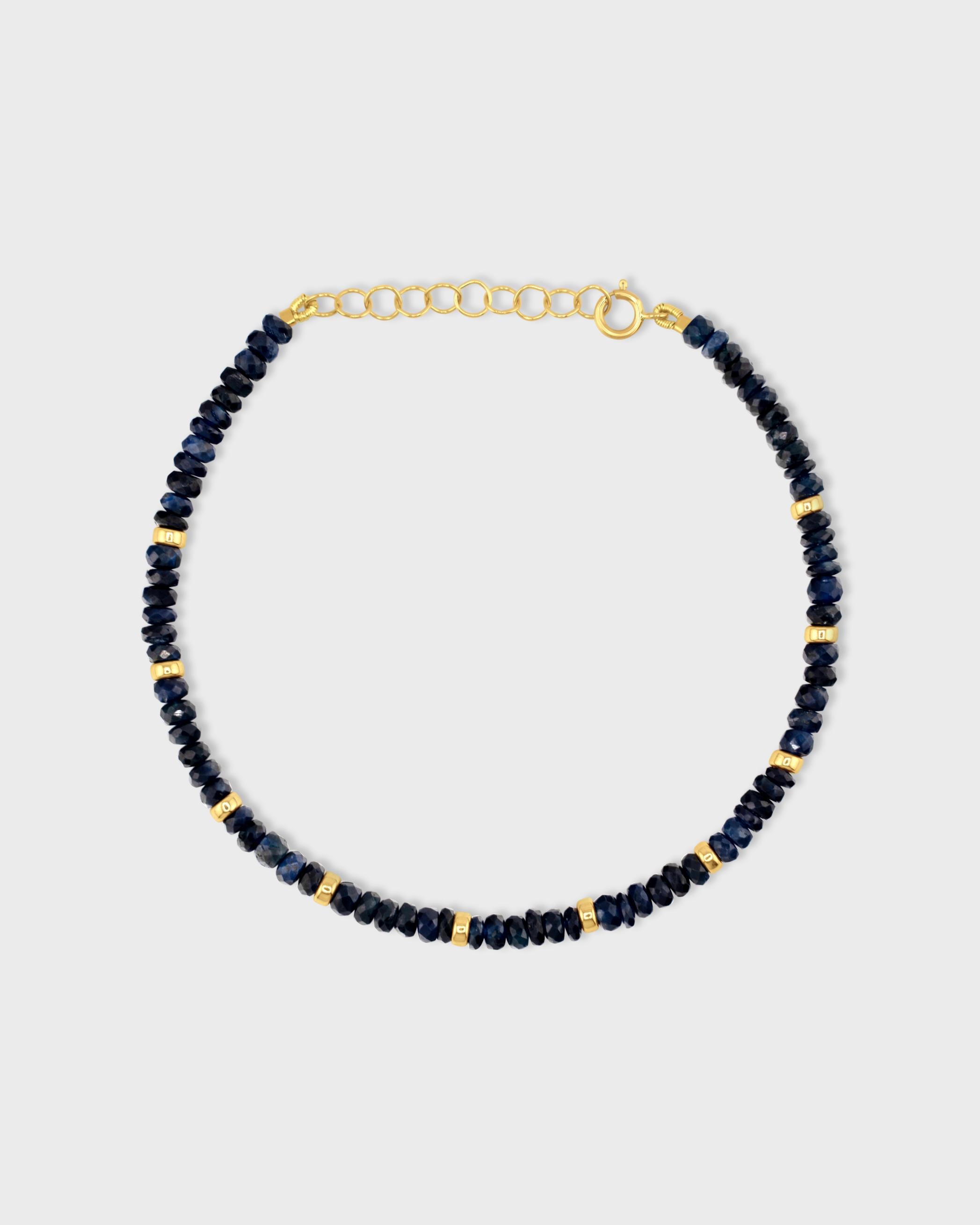 Birthstone September Sapphire Gold Bead Bracelet