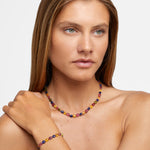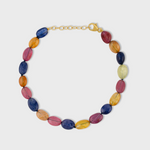 Multicolored sapphire stones blend harmoniously in this smooth oval bracelet, creating a vibrant spectrum of colors. A joyful accessory to brighten any look.