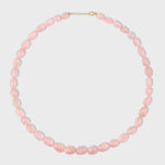 This necklace features large morganite stones with a delicate, soft pink hue, exuding romance and grace. Its smooth, candy-like design gives it a contemporary, chic appeal, perfect for special occasions.