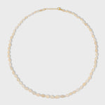 Iridescent opal tear drop necklace hand beaded in NYC and finished in 14 karat gold hardware.