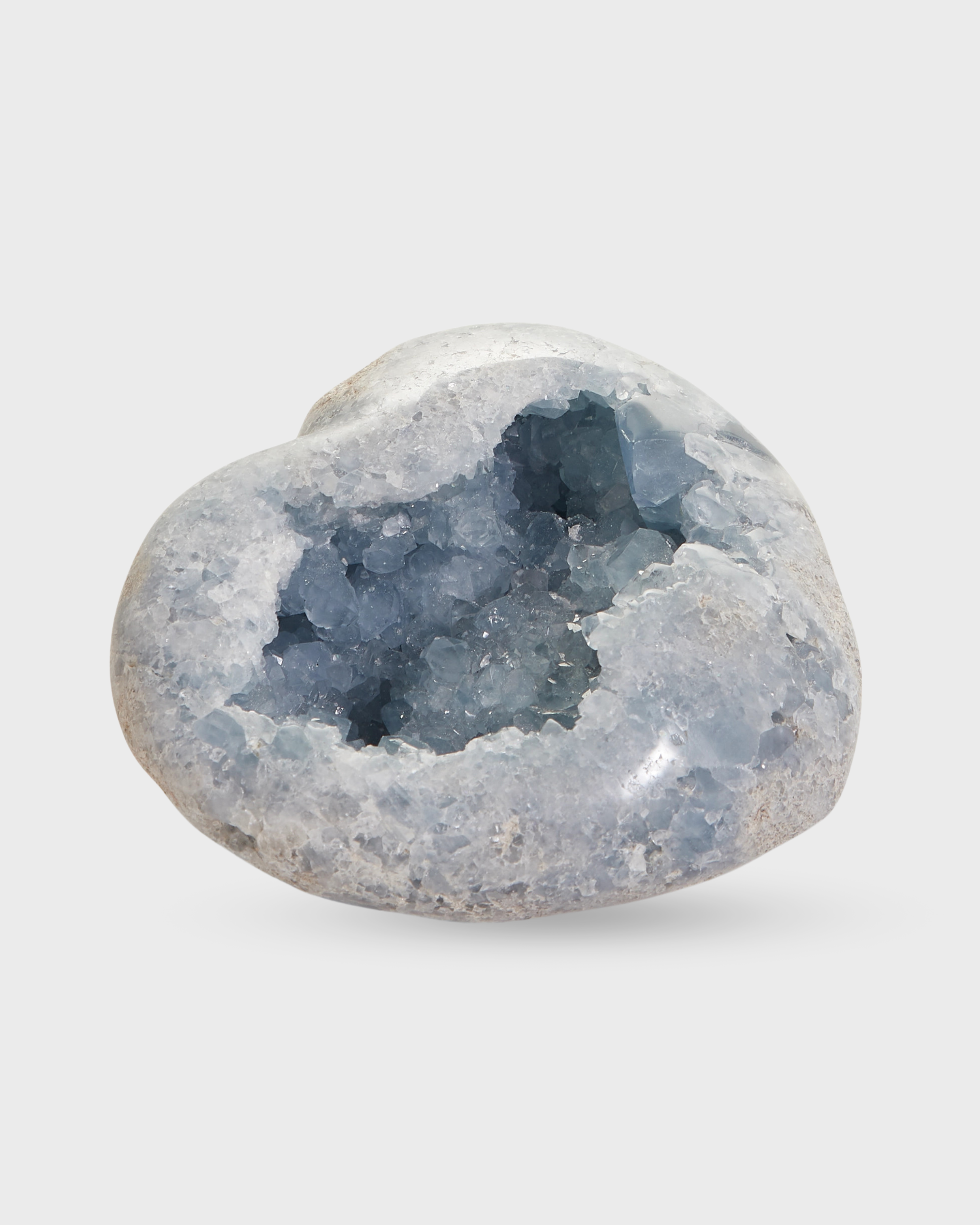 The Celestine Heart combines the gentle energy of celestine with the timeless shape of a heart, creating a symbol of peace and love. Its polished surface and calming blue tones make it an ideal decorative piece for your home. Place it in any space where you wish to enhance tranquility and emotional balance.