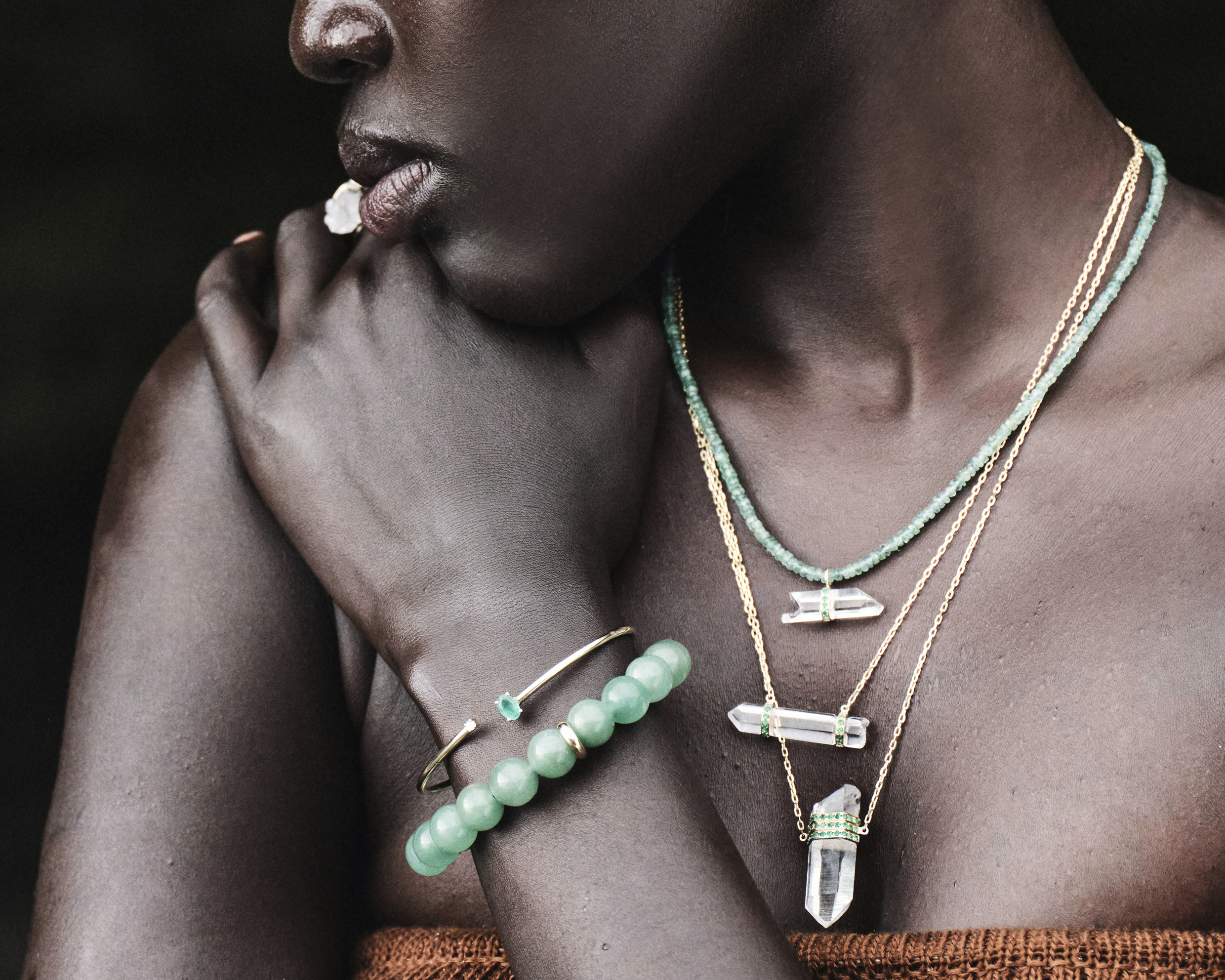 Each beaded jewelry piece is hand strung from the highest quality materials that are cut from natural mineral sources. They are sensitive to prolonged exposure to hairsprays and scents. To ensure longevity please be gentle and avoid tugging and pulling of these pieces.