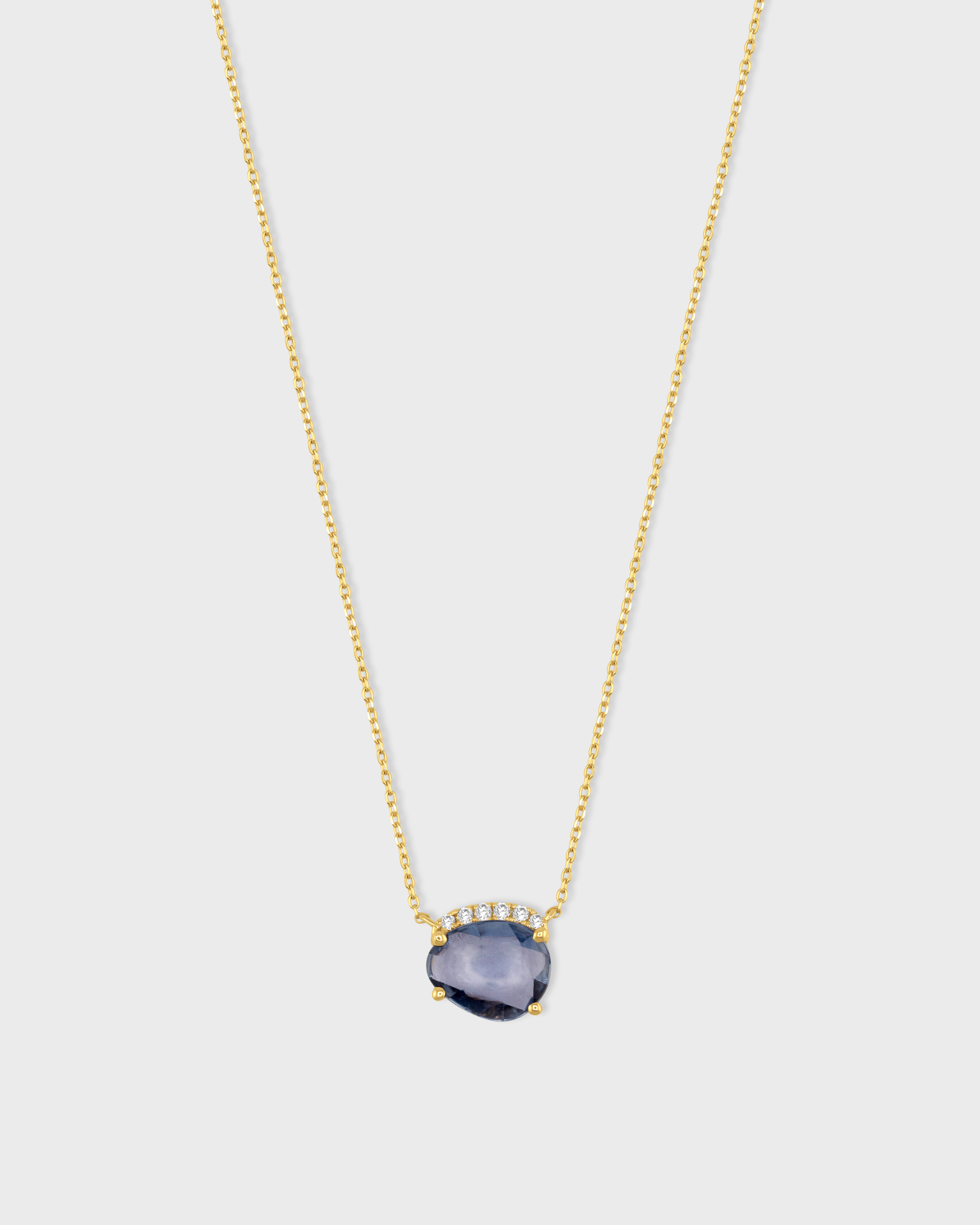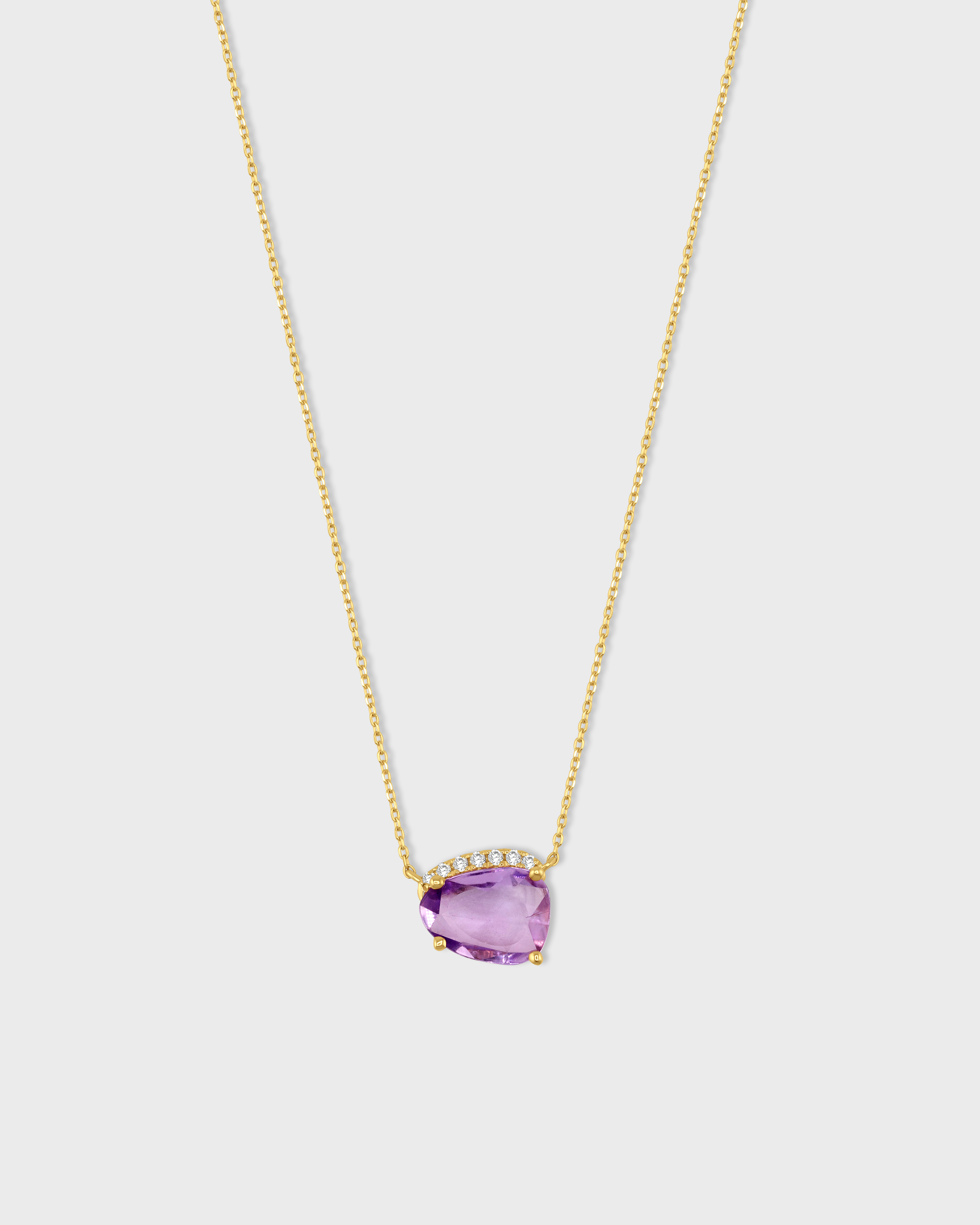 Crafted from 14k gold and handmade in NYC. A lustrous purple sapphire takes center stage, embraced by a delicate crown of sparkling diamonds.