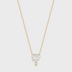 Crafted from 14k gold and handmade in NYC. A lustrous white sapphire takes center stage elevated by a delicate sparkling diamonds drop.