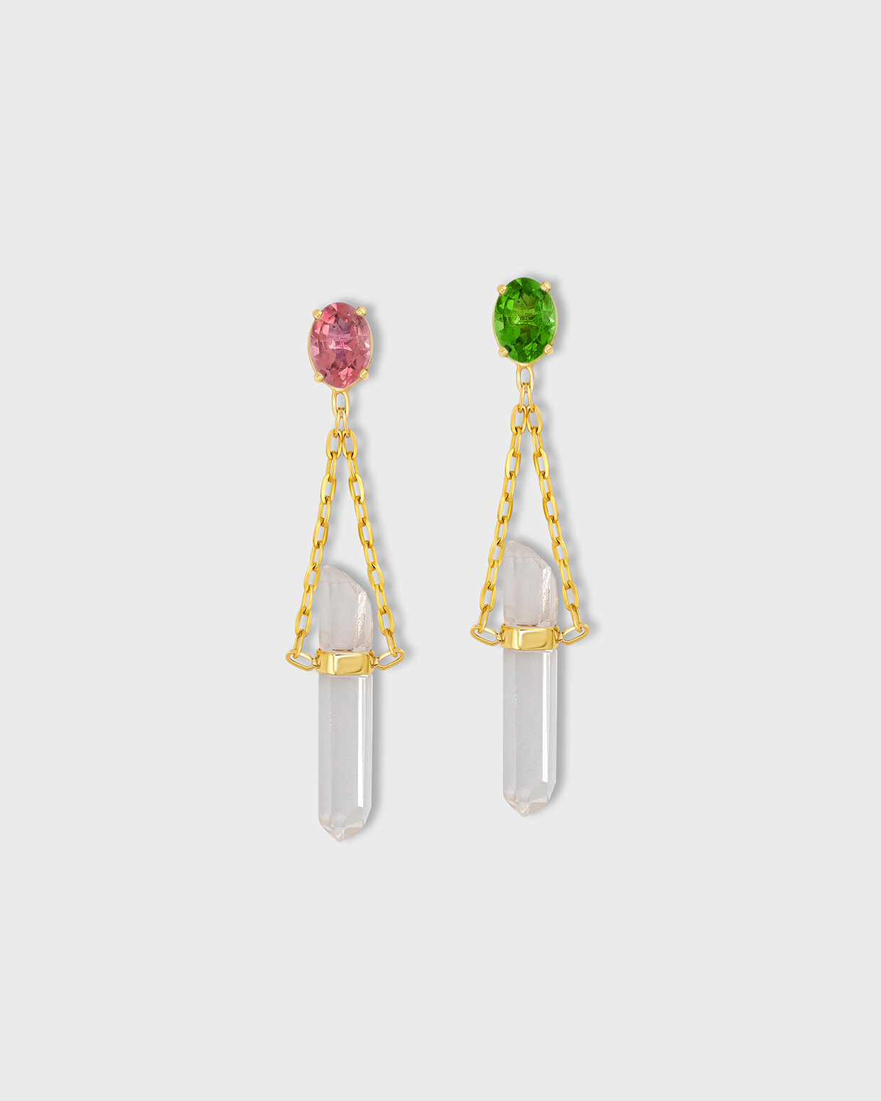 Chakra Pink & Green Tourmaline Gemstone Crystal Drop Earrings