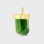 A vivid green chrome diopside crystal is crowned in polished 14k gold for an earthy yet refined statement. A striking charm that adds natural brilliance and bold color to any chain.
