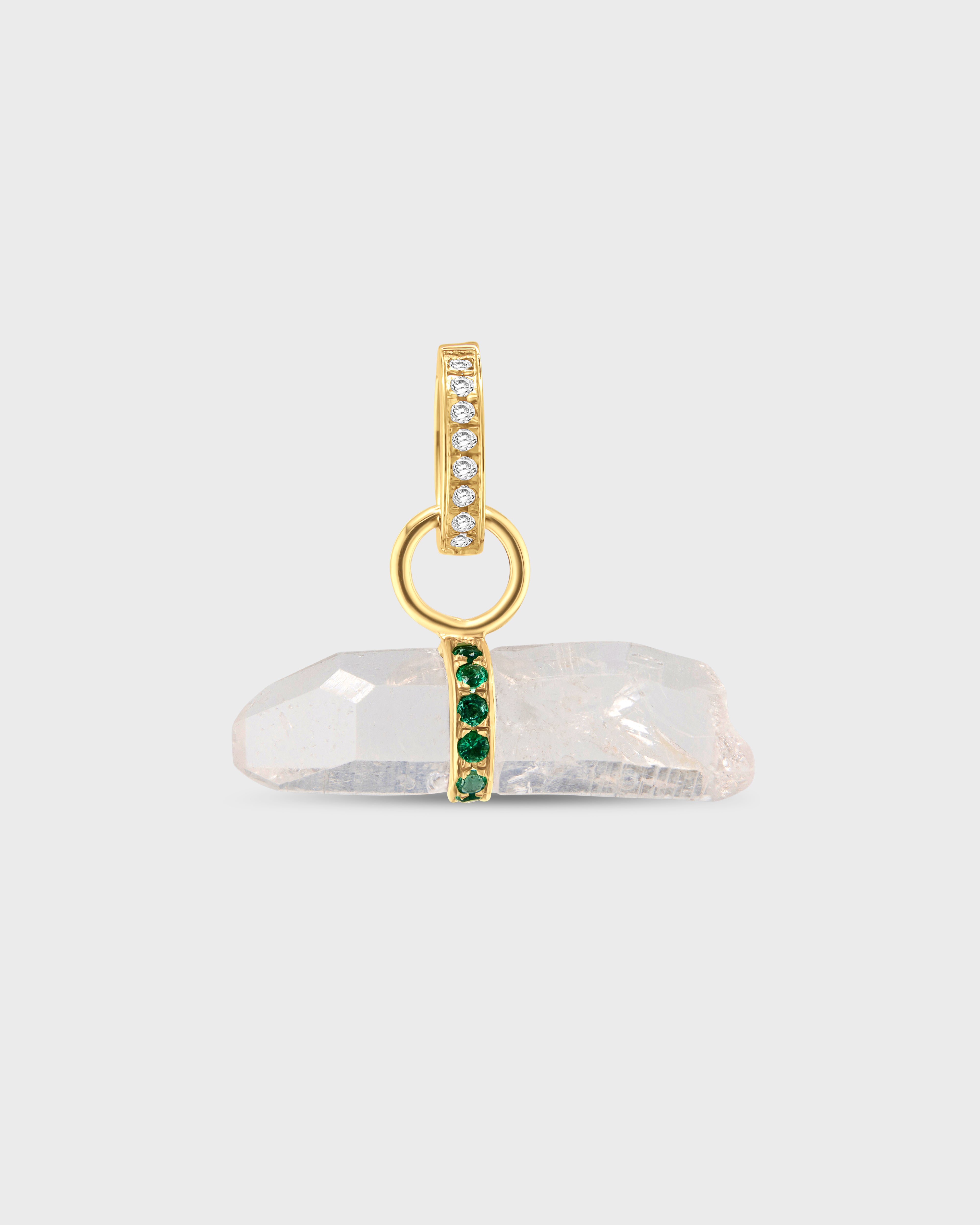 The Crystal Quartz Diamond Center Bar Charm pairs raw elegance with luxury, featuring a natural quartz stone enhanced by a diamond-studded gold bar. A dazzling yet understated piece, it elevates any jewelry combination with ease.