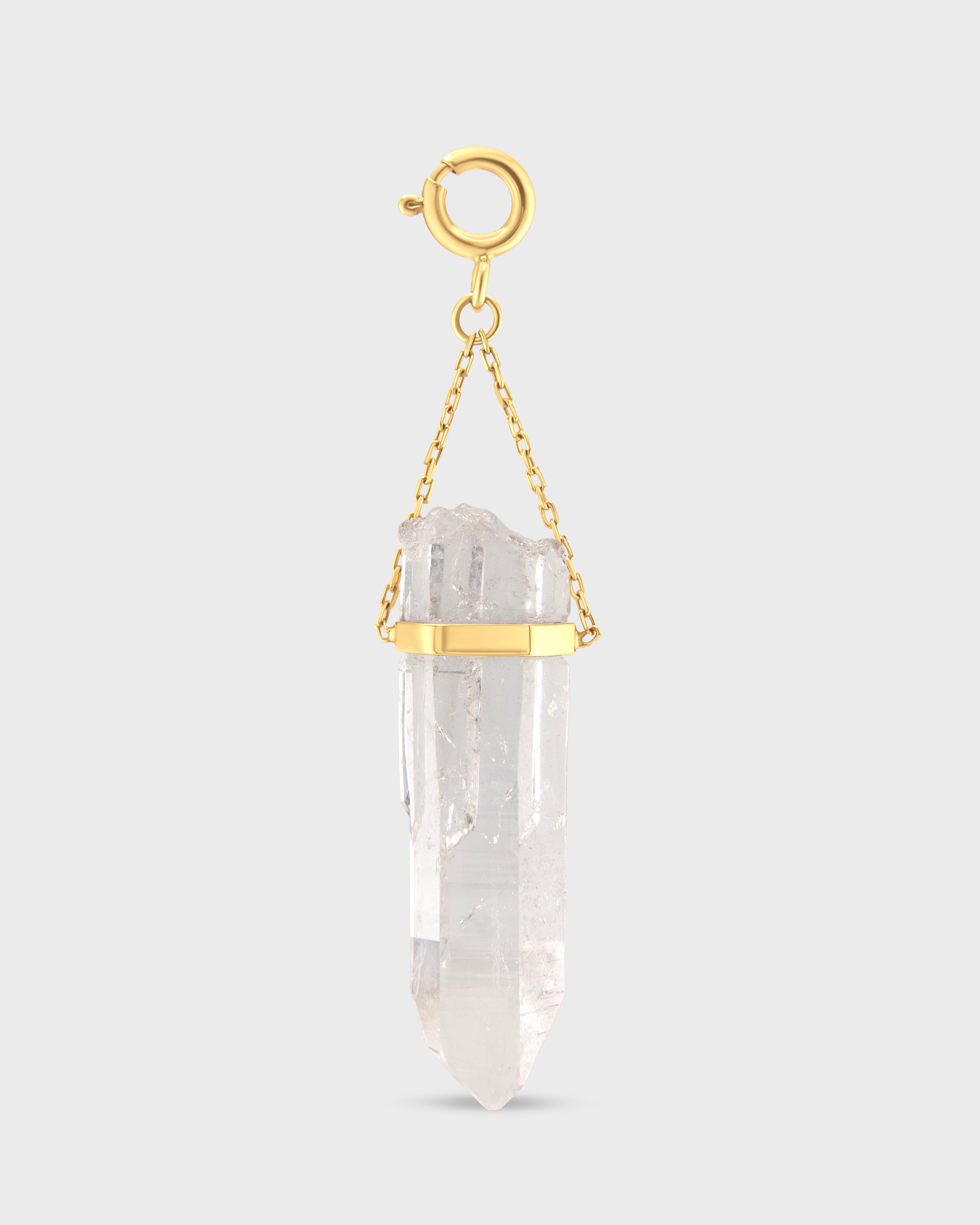 This raw Crystal Quartz talisman is hand-wrapped in 14K gold, celebrating the stone’s natural clarity and timeless beauty. A powerful, sculptural piece designed to be worn with intention.