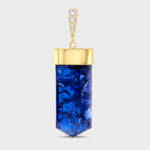 A deep violet-blue Tanzanite crystal set with a vertical diamond bar brings a sense of magic and transformation. Wear it to add bold, enchanting color to your look.