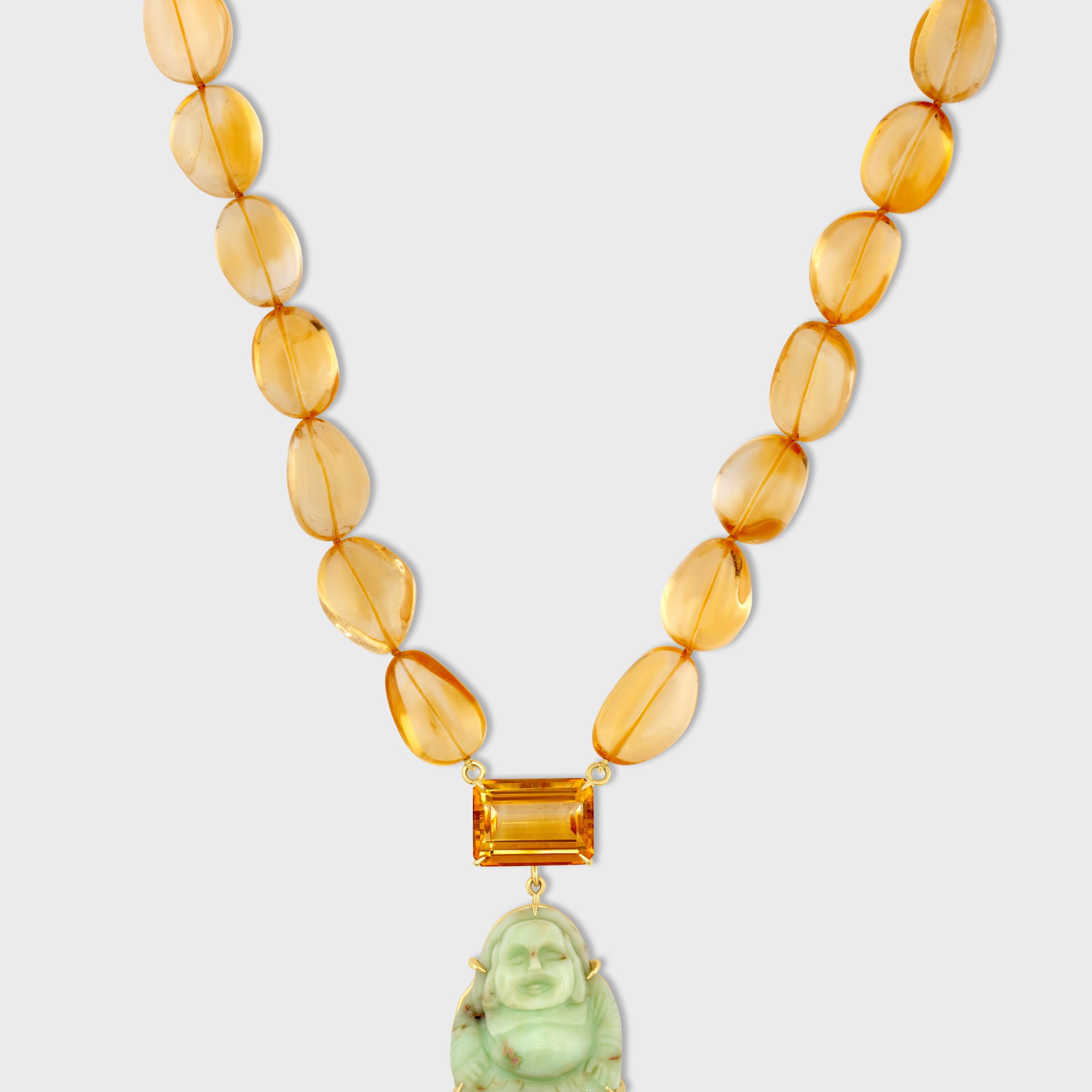 Happy Buddha Chrysoprase Jumbo Citrine Necklace