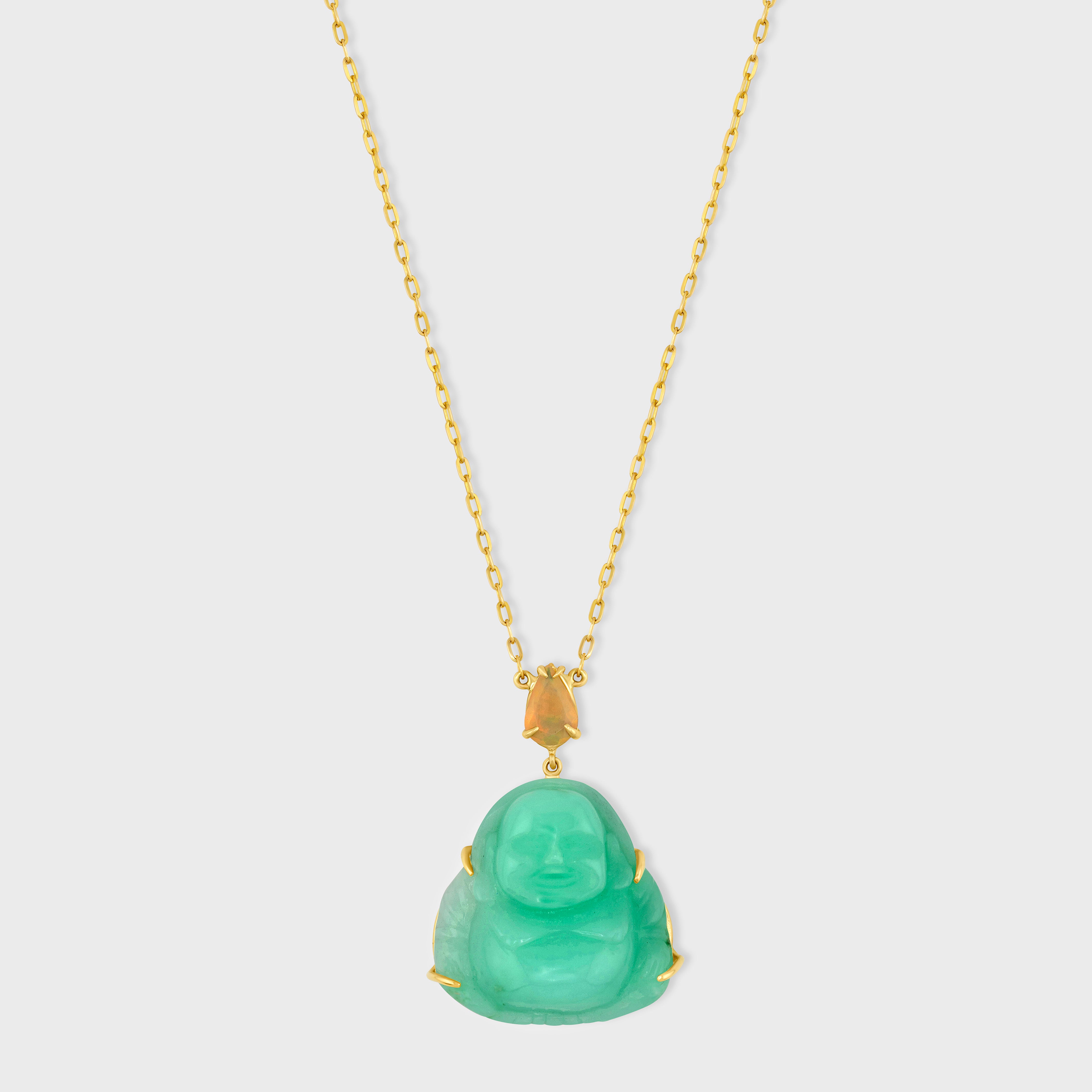 Happy Buddha Chrysoprase With Opal Crown Necklace