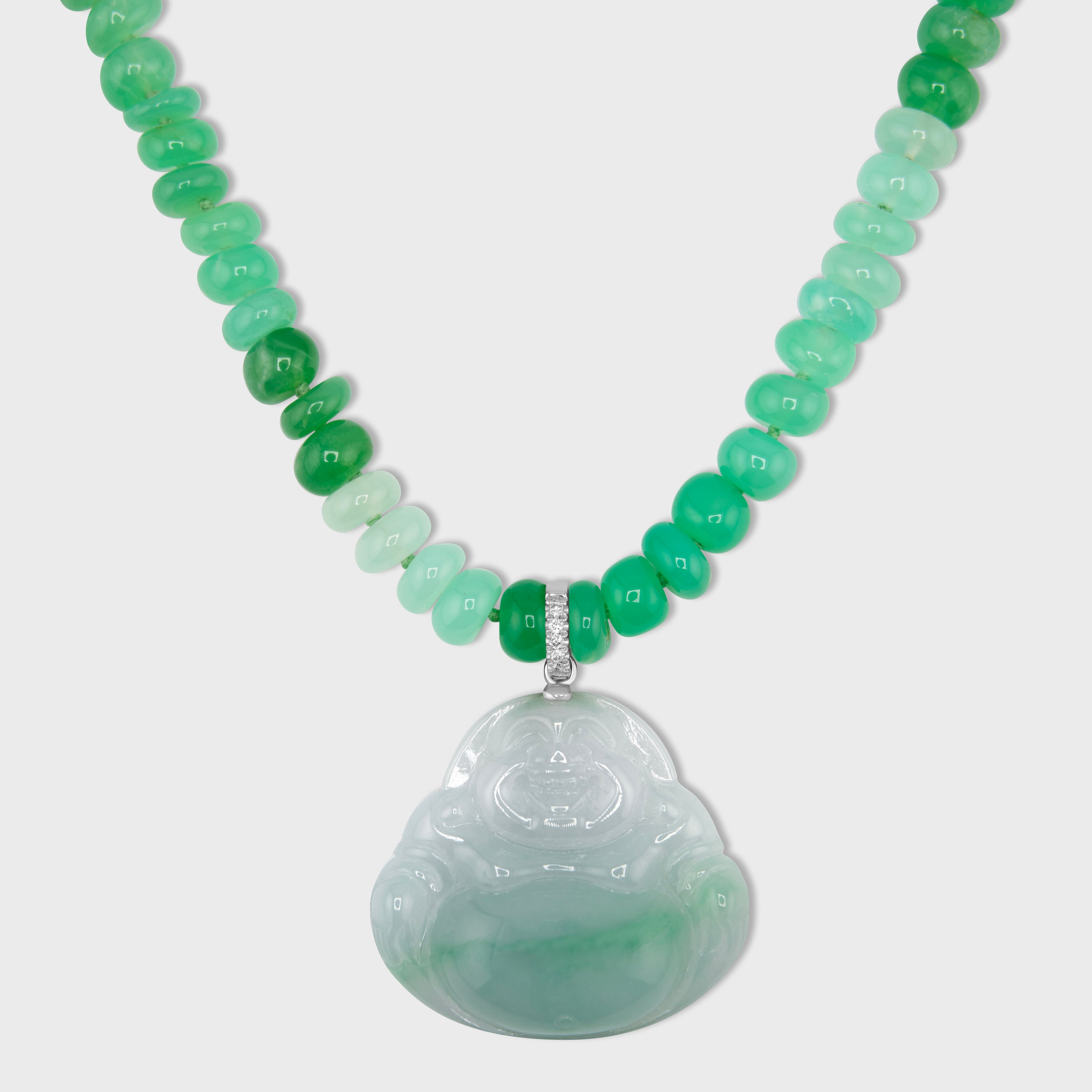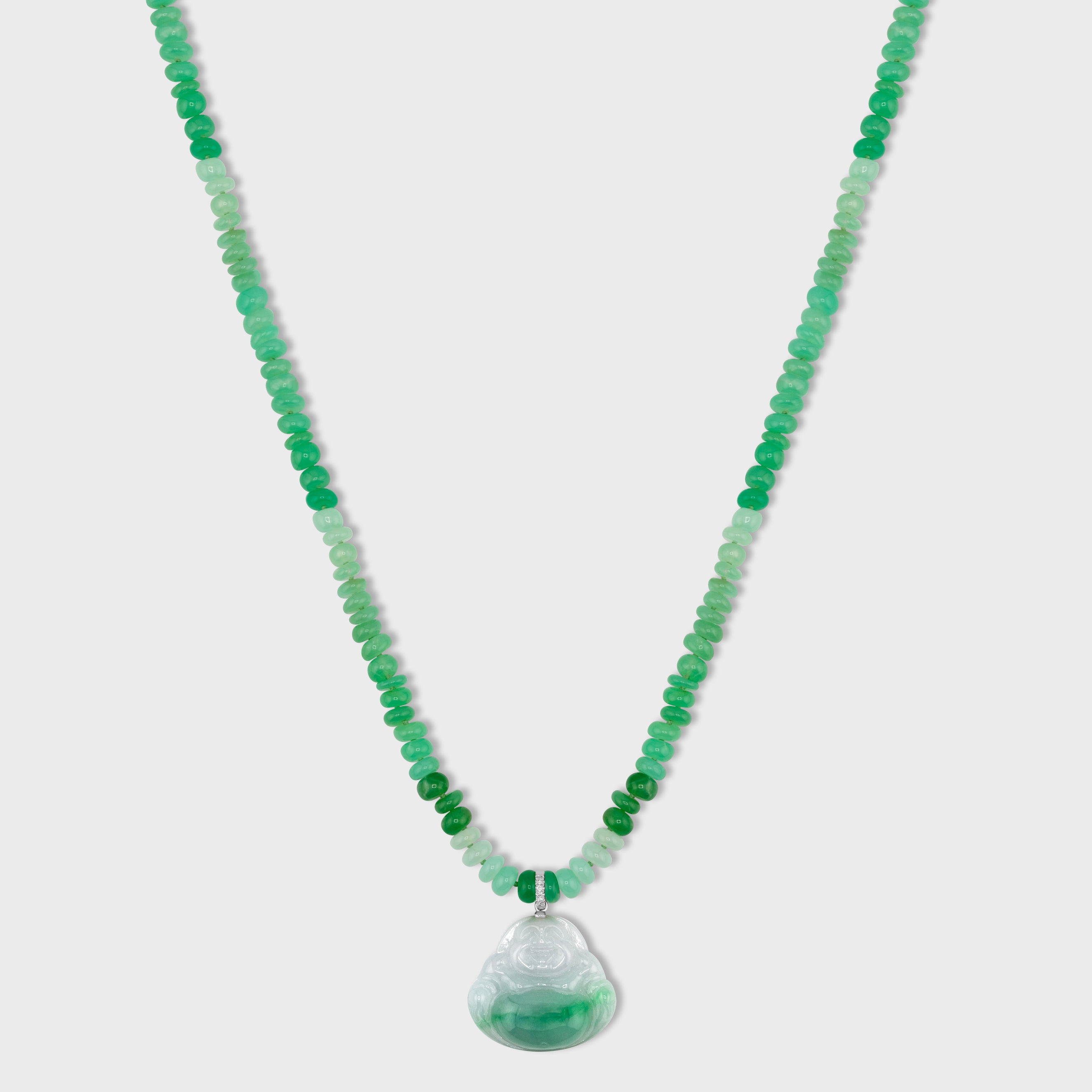 Happy Buddha Chrysoprase Diamond Jade Necklace