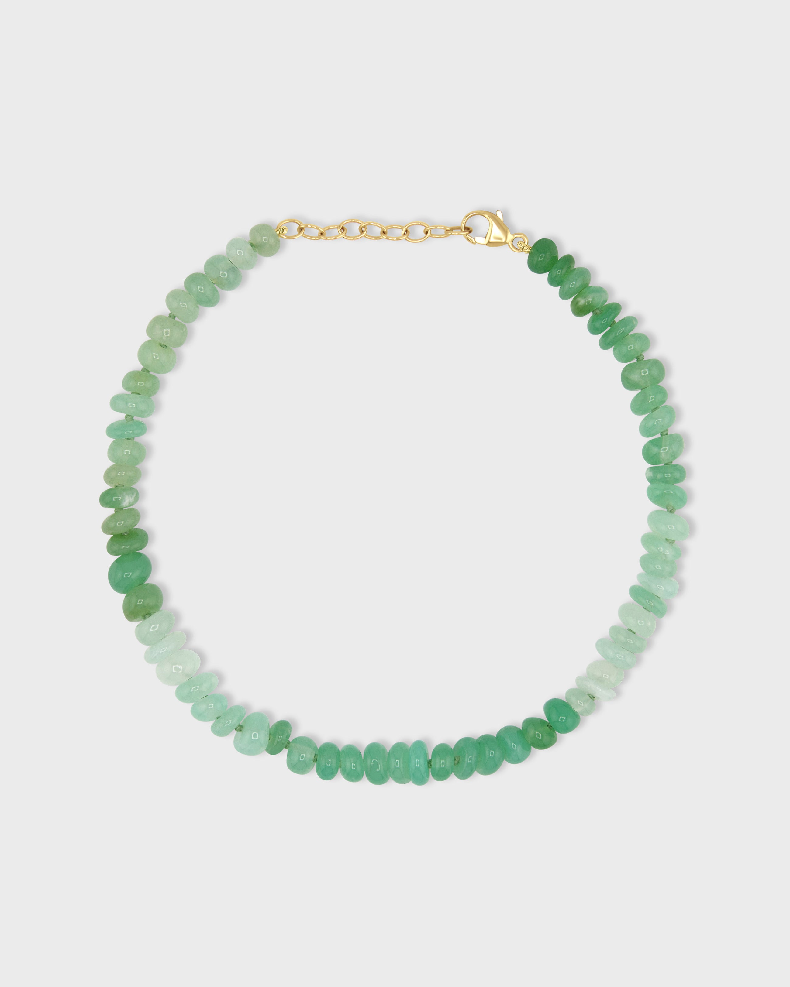 This Arizona Chrysoprase Ombre Bracelet features smooth, vibrant green stones transitioning from light to dark, symbolizing growth and renewal. Designed with intention and strung with care, it offers a beautiful connection to nature’s healing energy.