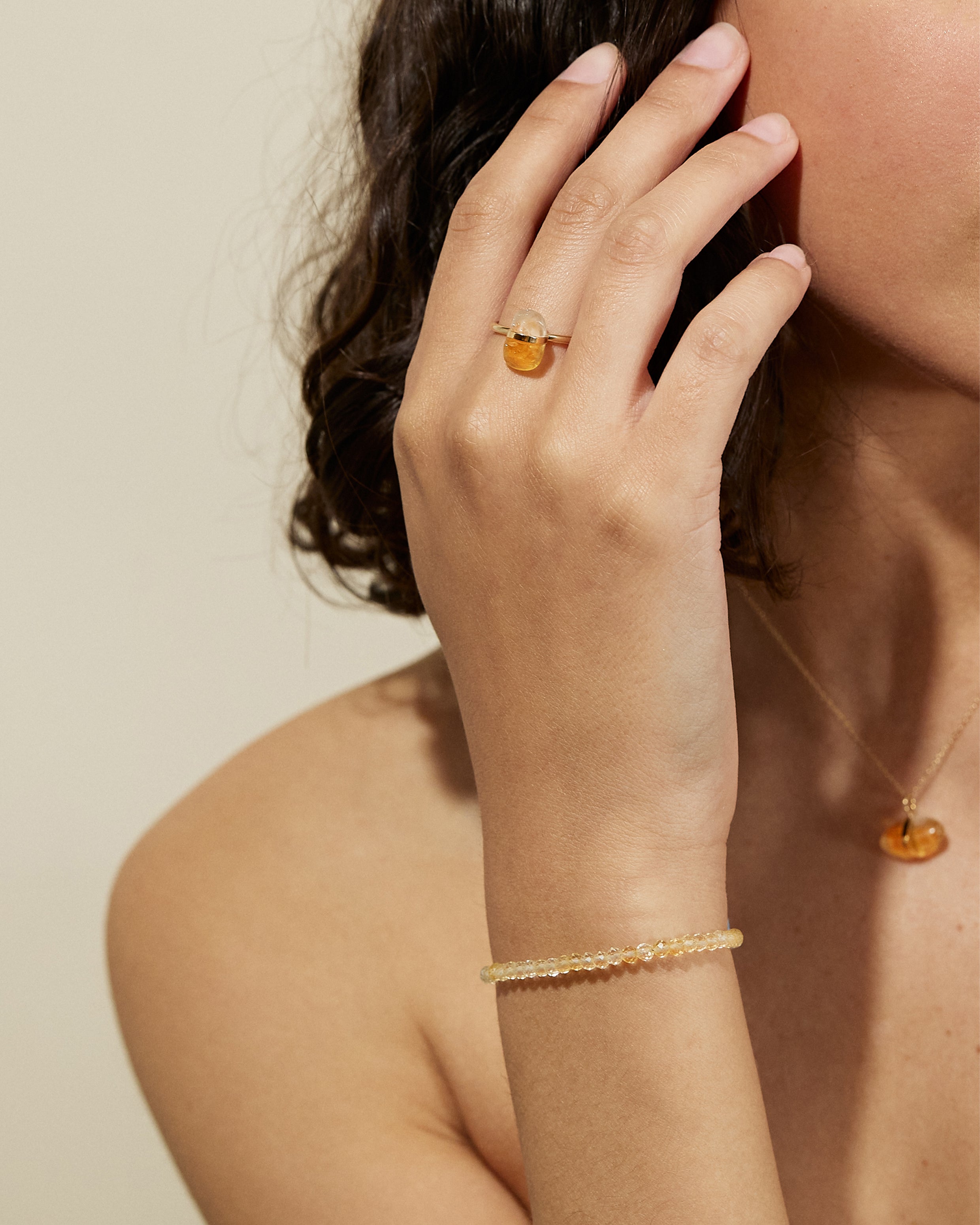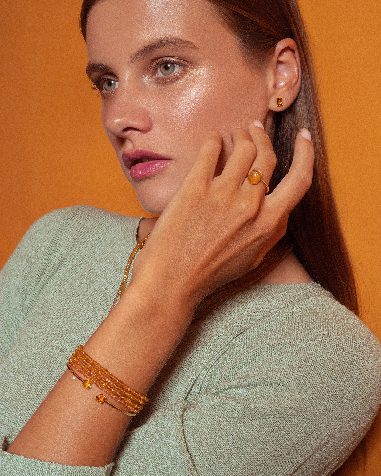 Citrine boasts hues that can range from light yellow to bright orange. This spectacular golden gemstone radiates positive energy and is known as the “success stone." Carrying the power of the sun, Citrine energizes the world around it with warmth and comfort. Its frequency awakens creativity and imagination, sustaining the transformation of dreams into reality. With its pure yellow energy, Citrine encourages the fullness of life, fresh beginnings, and new pursuits.
