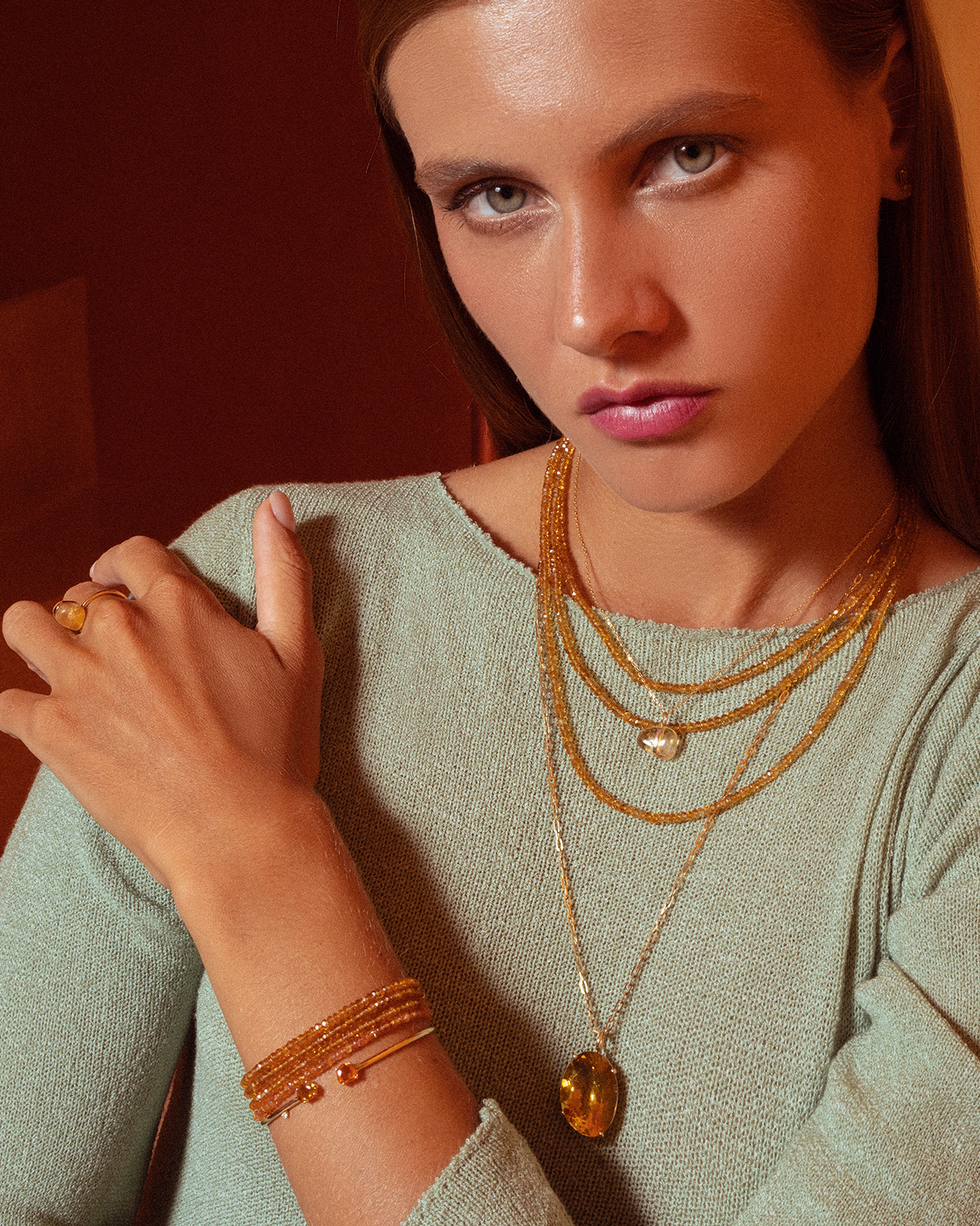 Each beaded jewelry piece is hand strung from the highest quality materials that are cut from natural mineral sources. They are sensitive to prolonged exposure to hairsprays and scents. To ensure longevity please be gentle and avoid tugging and pulling of these pieces.