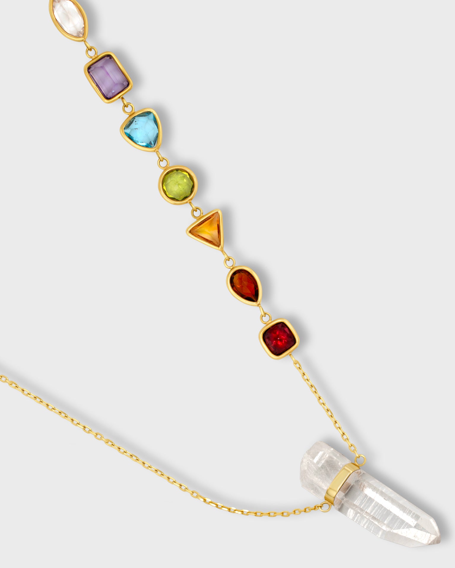 Chakra Rainbow Gemstone Crystal Quartz Necklace