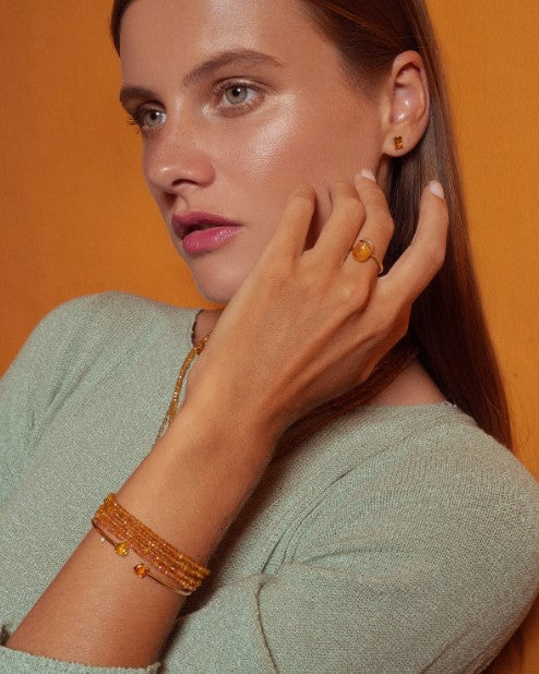 Each beaded jewelry piece is hand strung from the highest quality materials that are cut from natural mineral sources. They are sensitive to prolonged exposure to hairsprays and scents. To ensure longevity please be gentle and avoid tugging and pulling of these pieces.