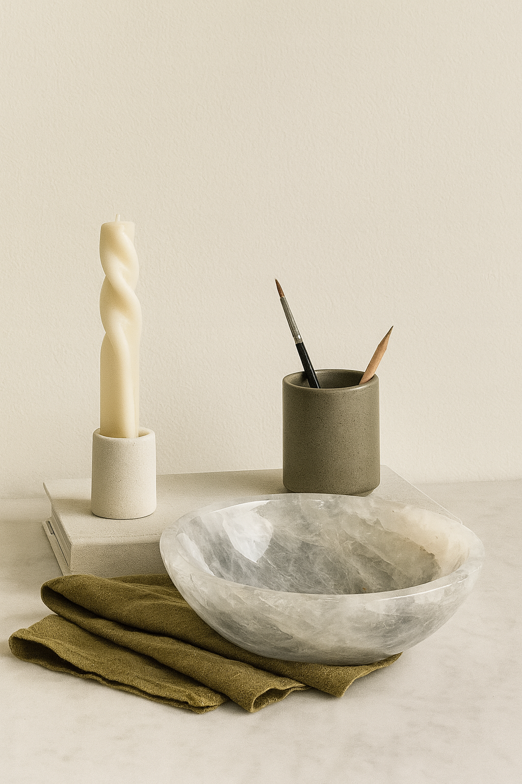 Hand-carved from luminous selenite, this round bowl glows with ethereal clarity and soft white translucence. Known for its cleansing and purifying energy, it’s perfect for displaying crystals, jewelry, or sacred objects while inviting peace, light, and spiritual renewal into any space.