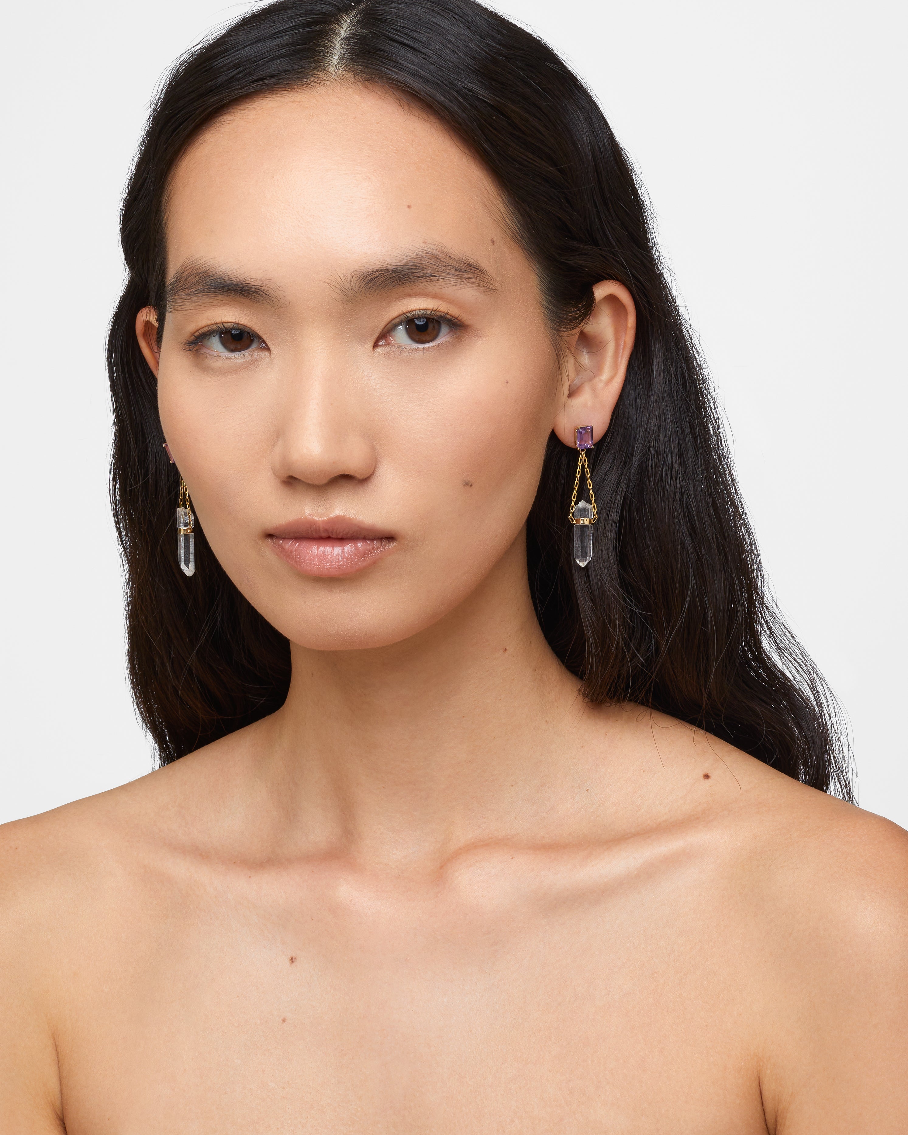 Chakra Amethyst Gemstone Crystal Drop Earrings