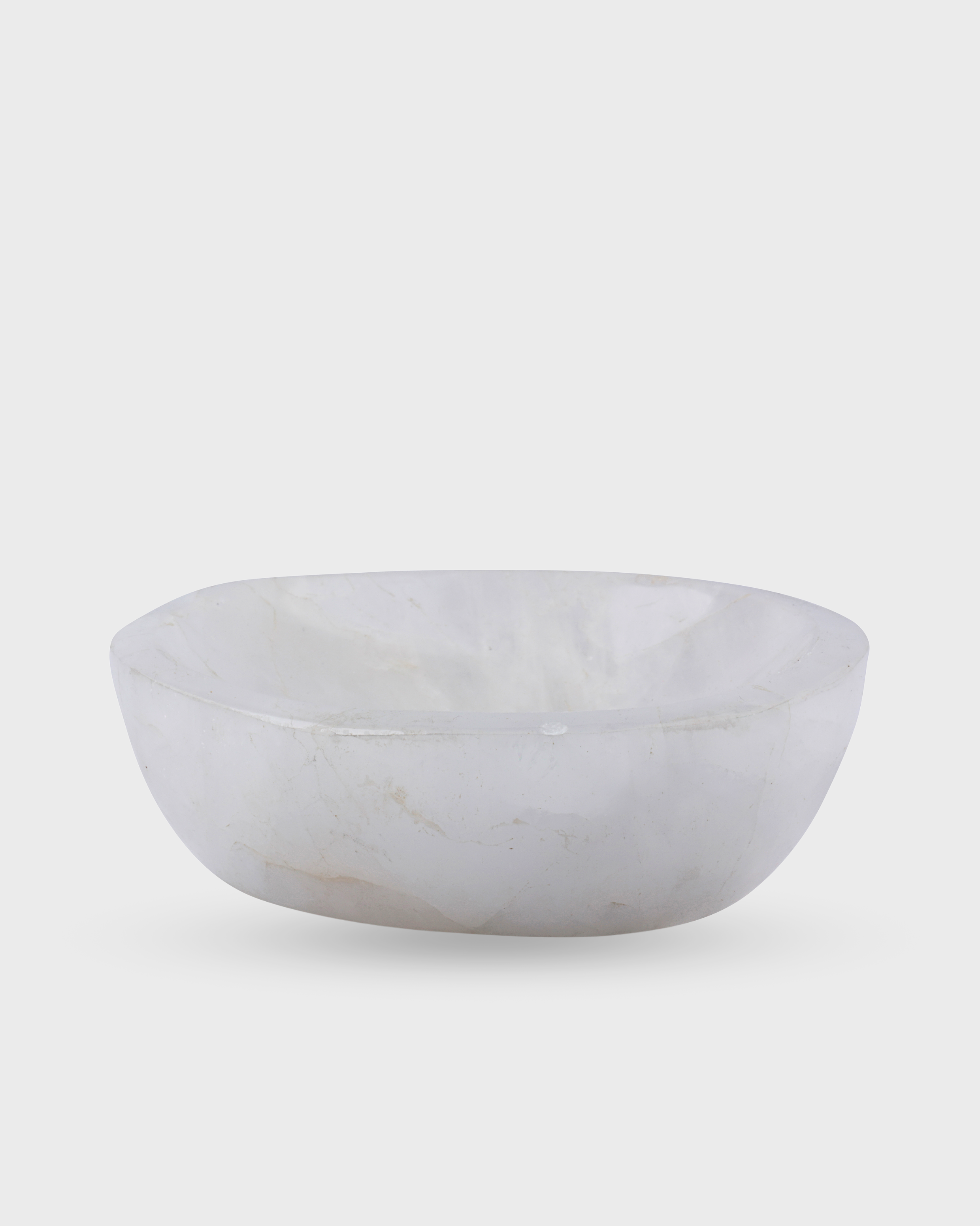 This hand-carved Crystal Quartz Bowl showcases the natural clarity and brilliance of the stone. Perfect for holding jewelry or other small treasures, it adds a touch of sophistication to any display. Its clear, polished surface enhances the flow of energy, making it a stunning and functional piece.