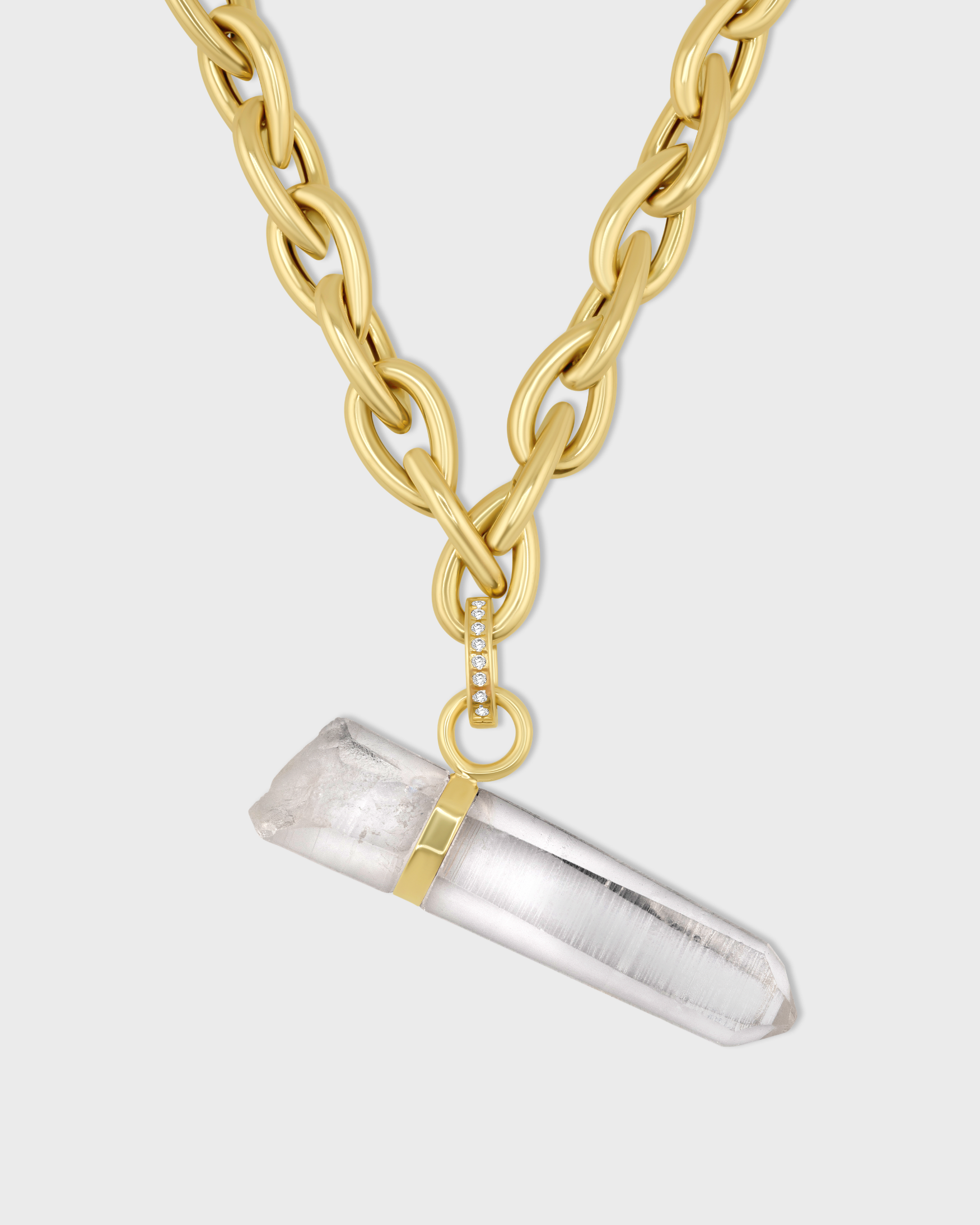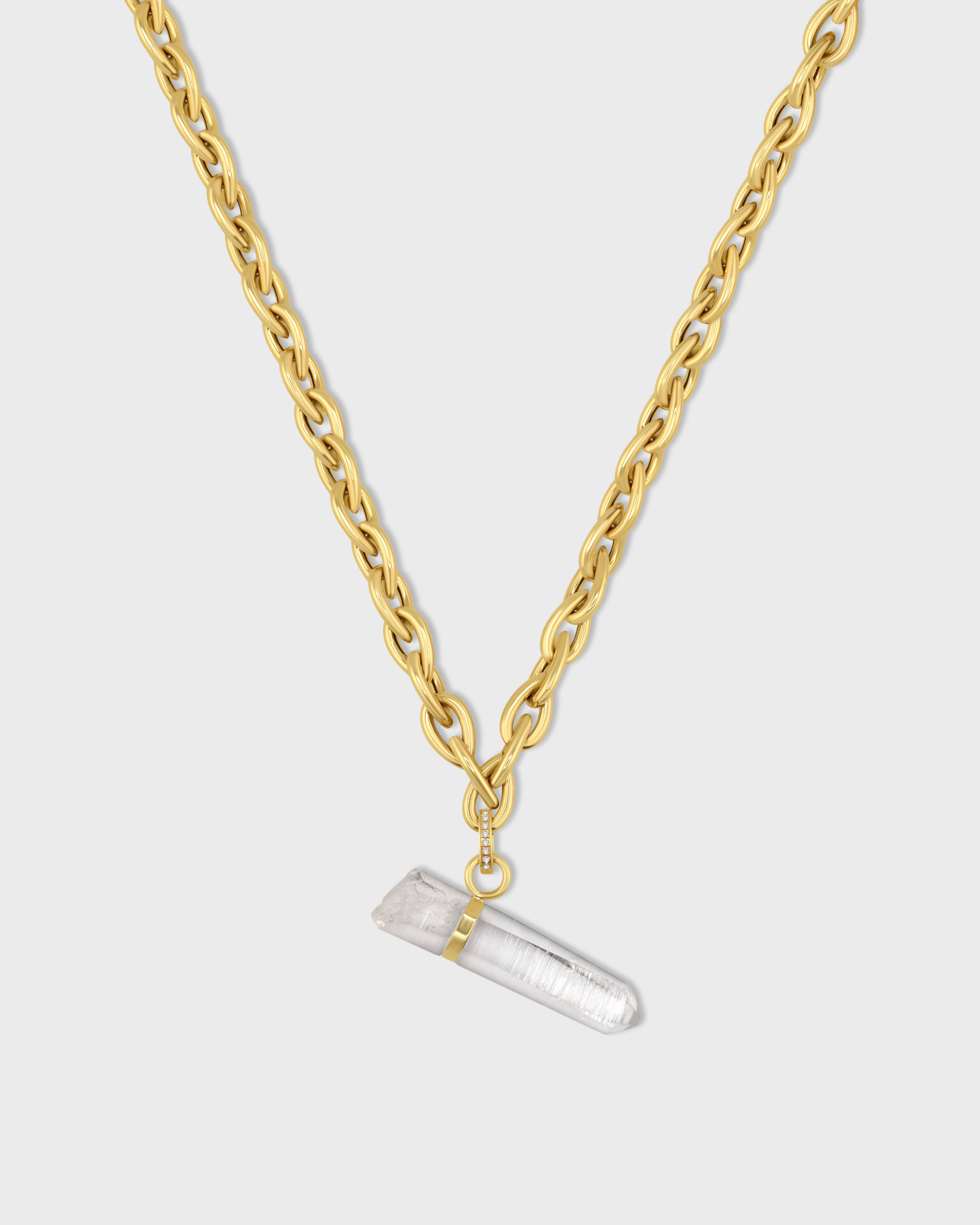 A statement piece with a one of a kind crystal ready to attune to the vibration of each individual wearer. The crystal is detachable to the necklace - it is connected with the diamond link. Wear this necklace on its own, with your crystal, or other charms.