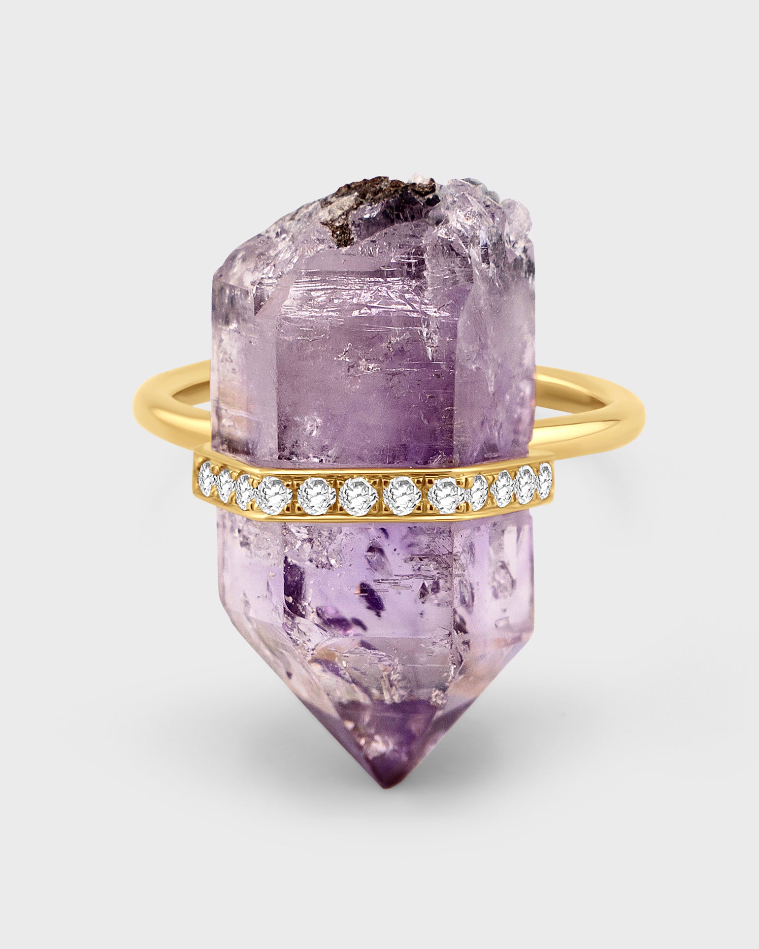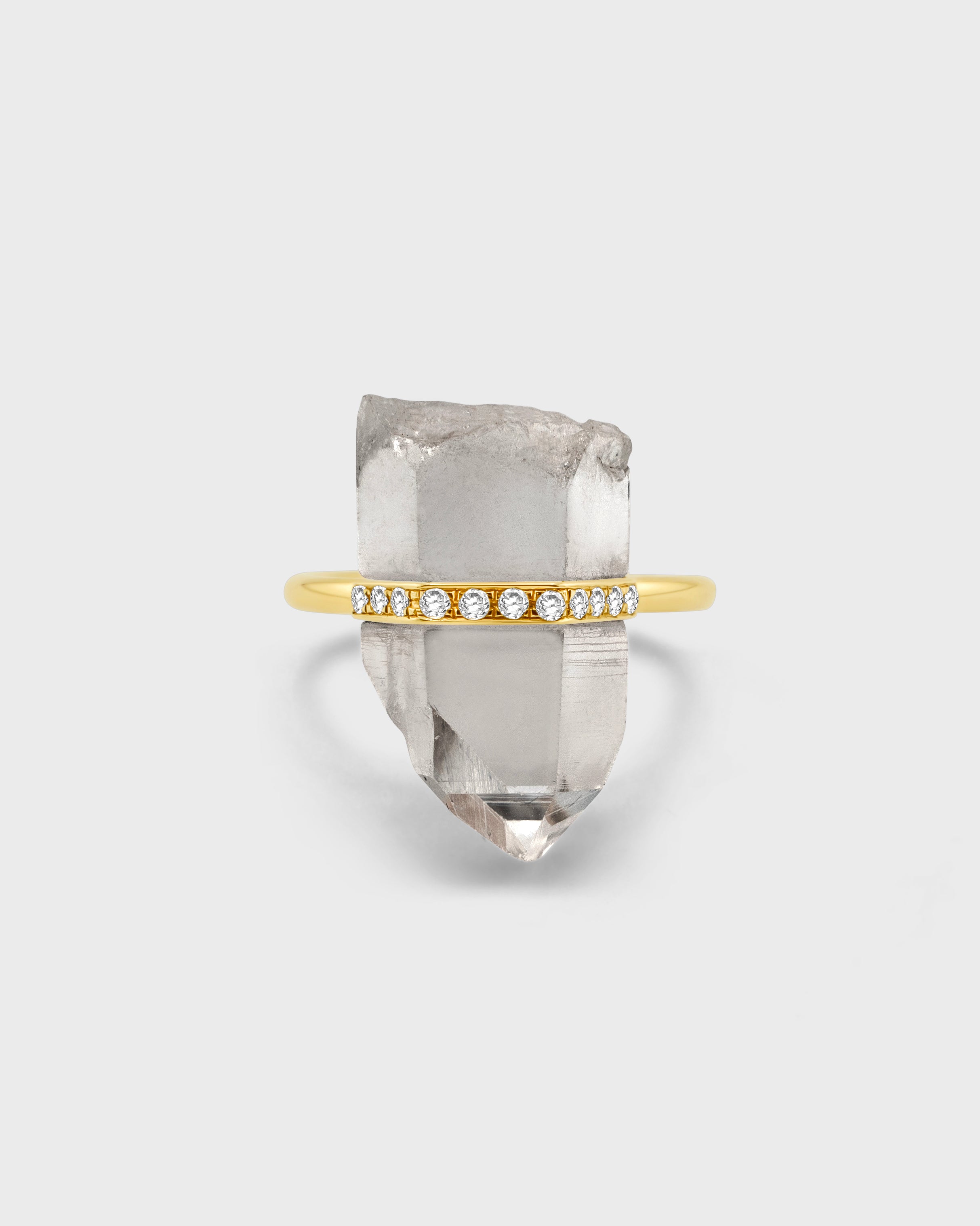 Our signature Crystal Quartz ring custom hand set with gold and diamonds.