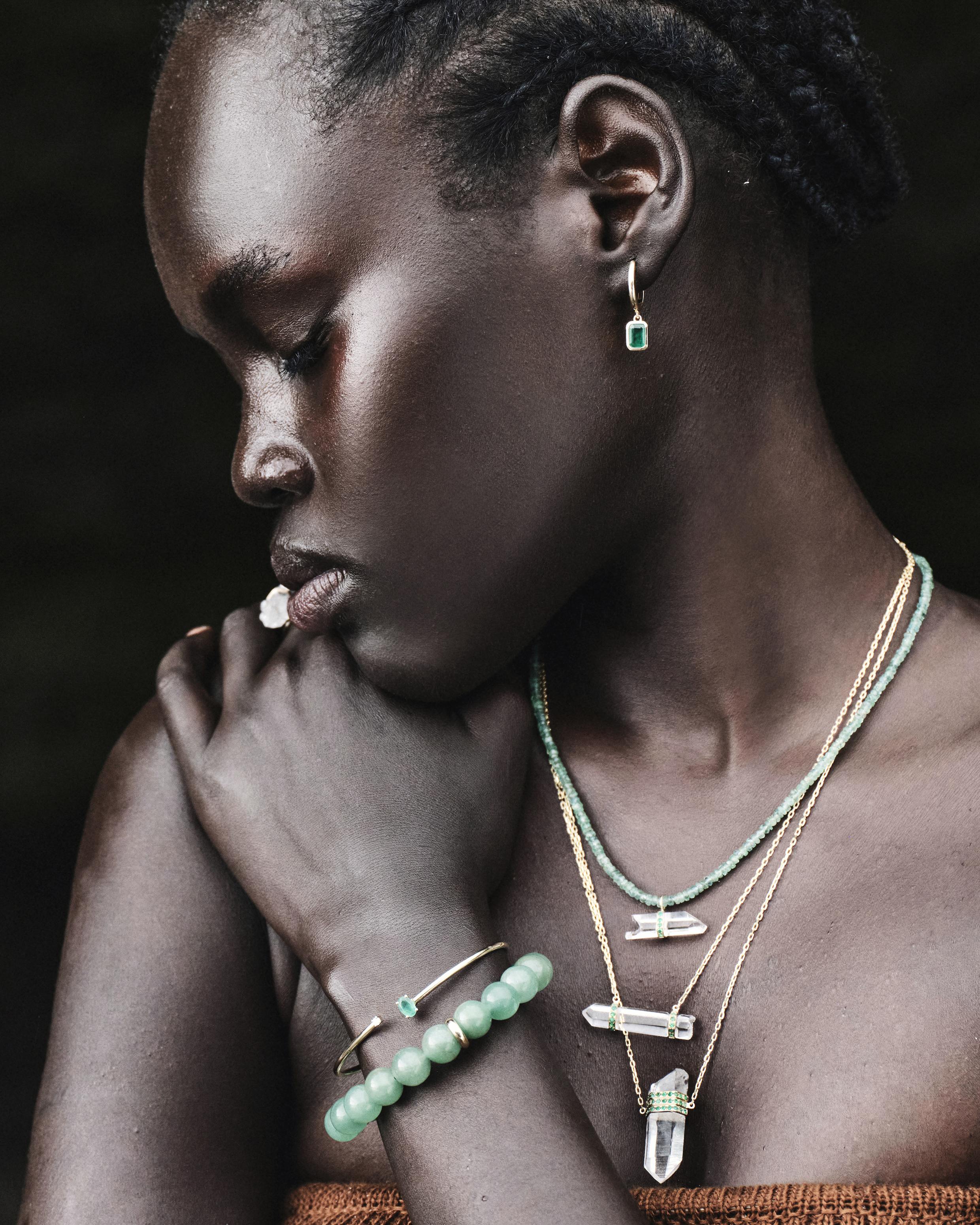 Each beaded jewelry piece is hand strung from the highest quality materials that are cut from natural mineral sources. They are sensitive to prolonged exposure to hairsprays and scents. To ensure longevity please be gentle and avoid tugging and pulling of these pieces.